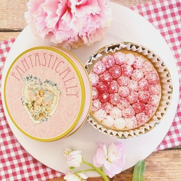 華やかで恋する美味しさお口の中でふわっと苺があふれるとびきり可愛い缶入りケーキ。
