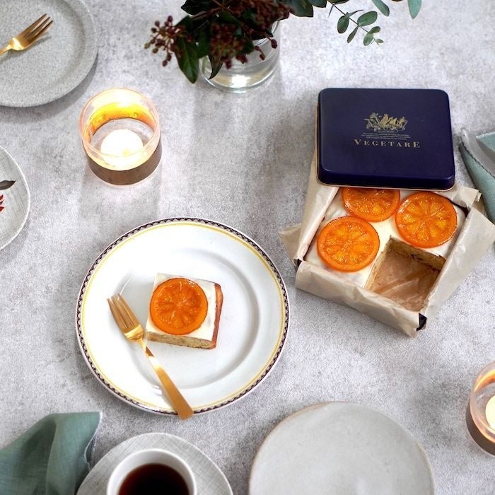 白砂糖のかわりに粉砂糖を使い空気をしっかり含ませることで生地はずっしりしていながらもふっくら。生地にオレンジの皮や果汁をたっぷり入れた自家製のオレンジペーストを混ぜ込んでいるため、風味豊かな味わいです。
