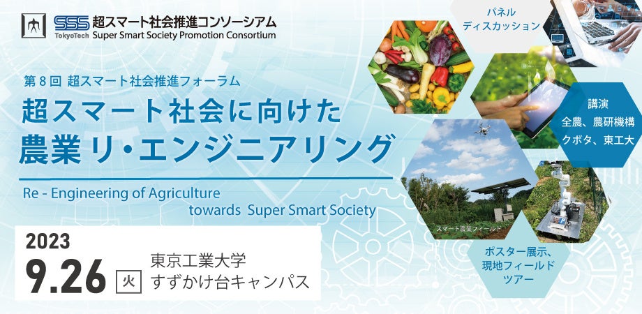 サイバー空間技術とフィジカル空間技術に量子科学を掛け合わせることで未来の超スマート社会の実現を目指す超スマート社会推進コンソーシアムは、来る9月26日(火)、「超スマート社会に向けた農業 リ・エンジニアリング」をテーマに、第8回 超スマート社会推進フォーラムを開催します。