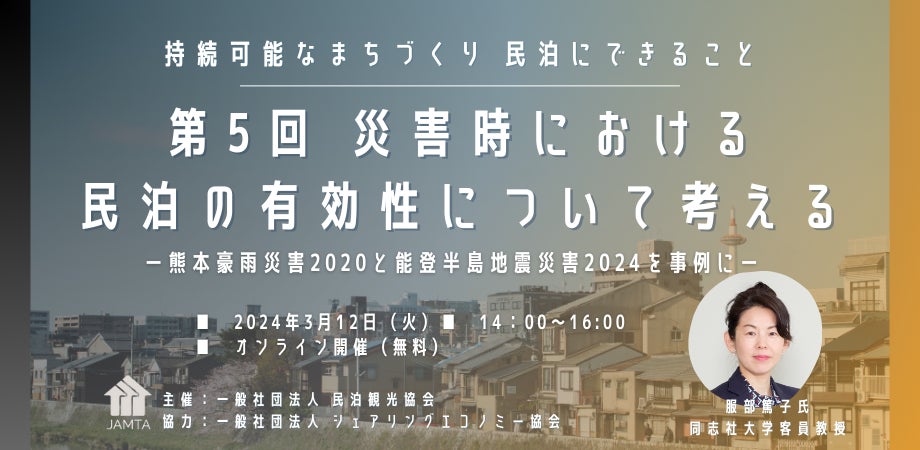 【オンラインセミナー】第5回 災害時における民泊の有効性について考える-熊本豪雨災害2020と能登半島地震災害2024を事例に民泊の役割を探ります。