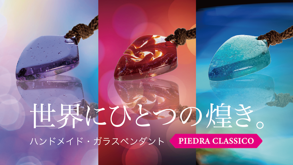 アートガラスの世界的メーカー「ブルズアイ」の最高級ガラスを使い、熟練職人が制作する世界にひとつのハンドメイドペンダント《 PiedraClassico 》が、クラウドファンディングで先行販売開始。