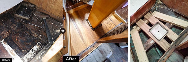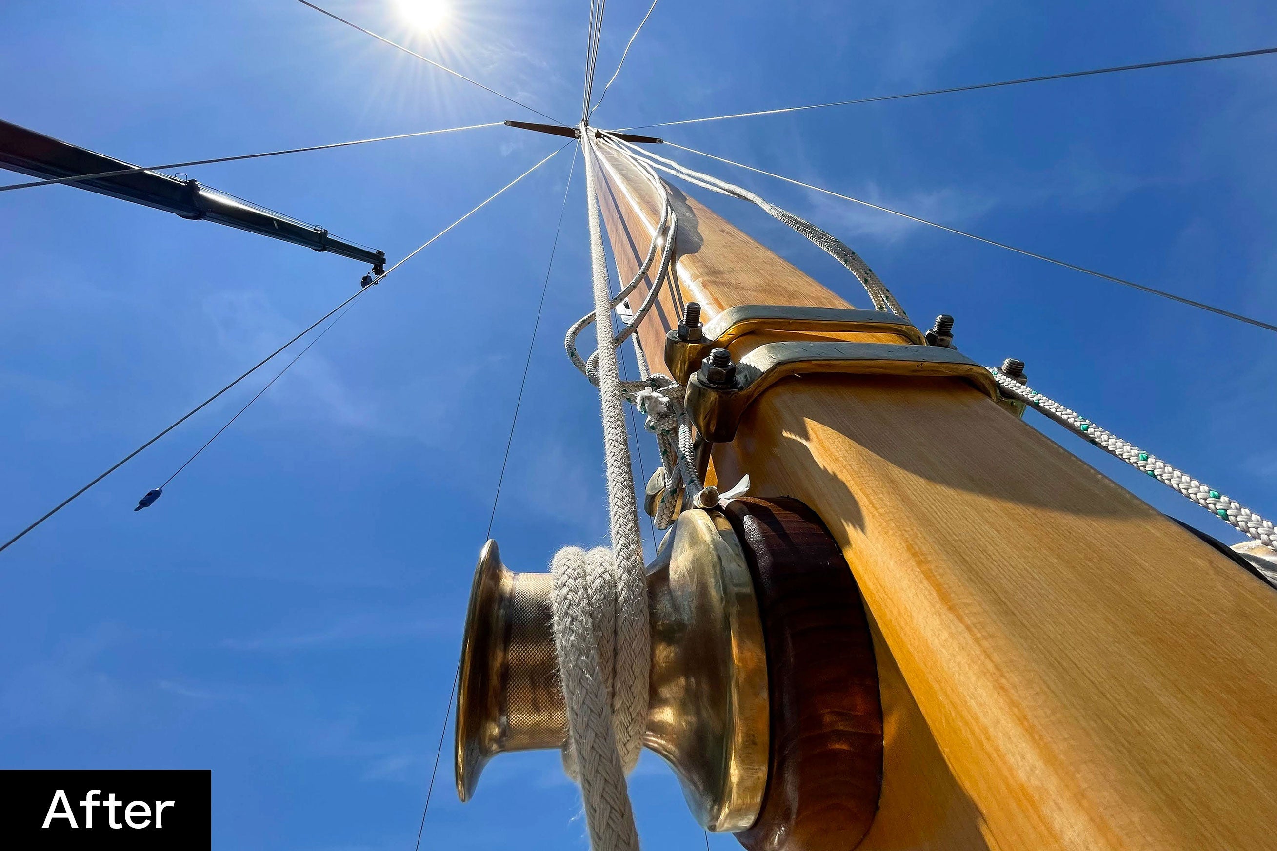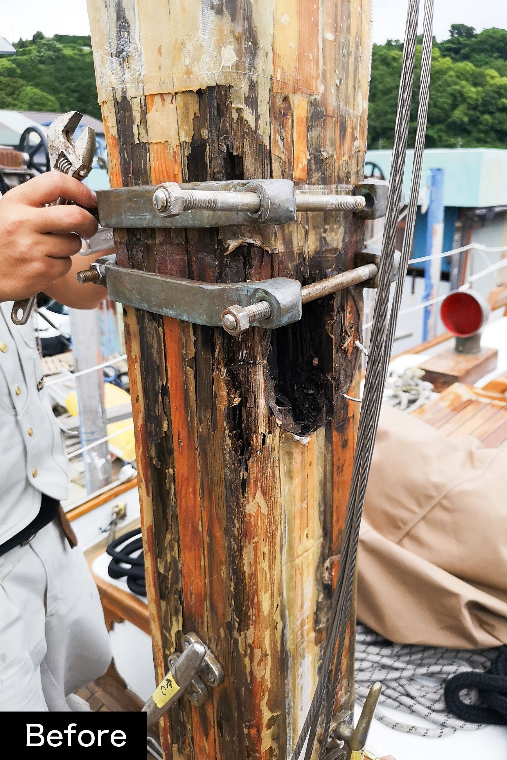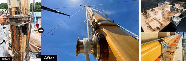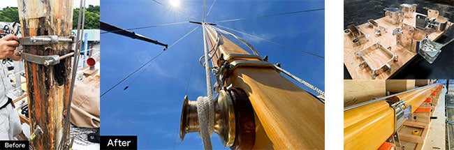 ・メイン、ミズンマスト、腐食や漏水が著しい箇所をレストア。ボルト貫通部はマスト抱かせ型に変更