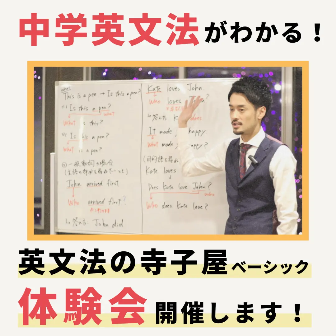英語学習、英会話習得のためのスクールはたくさんありますが、「英文法」を基礎からしっかりと学べる場所は多くありません。私たちは、2,000名以上の大人を指導してきた経験を活かし、中学英文法をしっかりと基礎から学べる場所を提供したいと考え「英文法の寺子屋・ベーシックコース」を開発しました。
