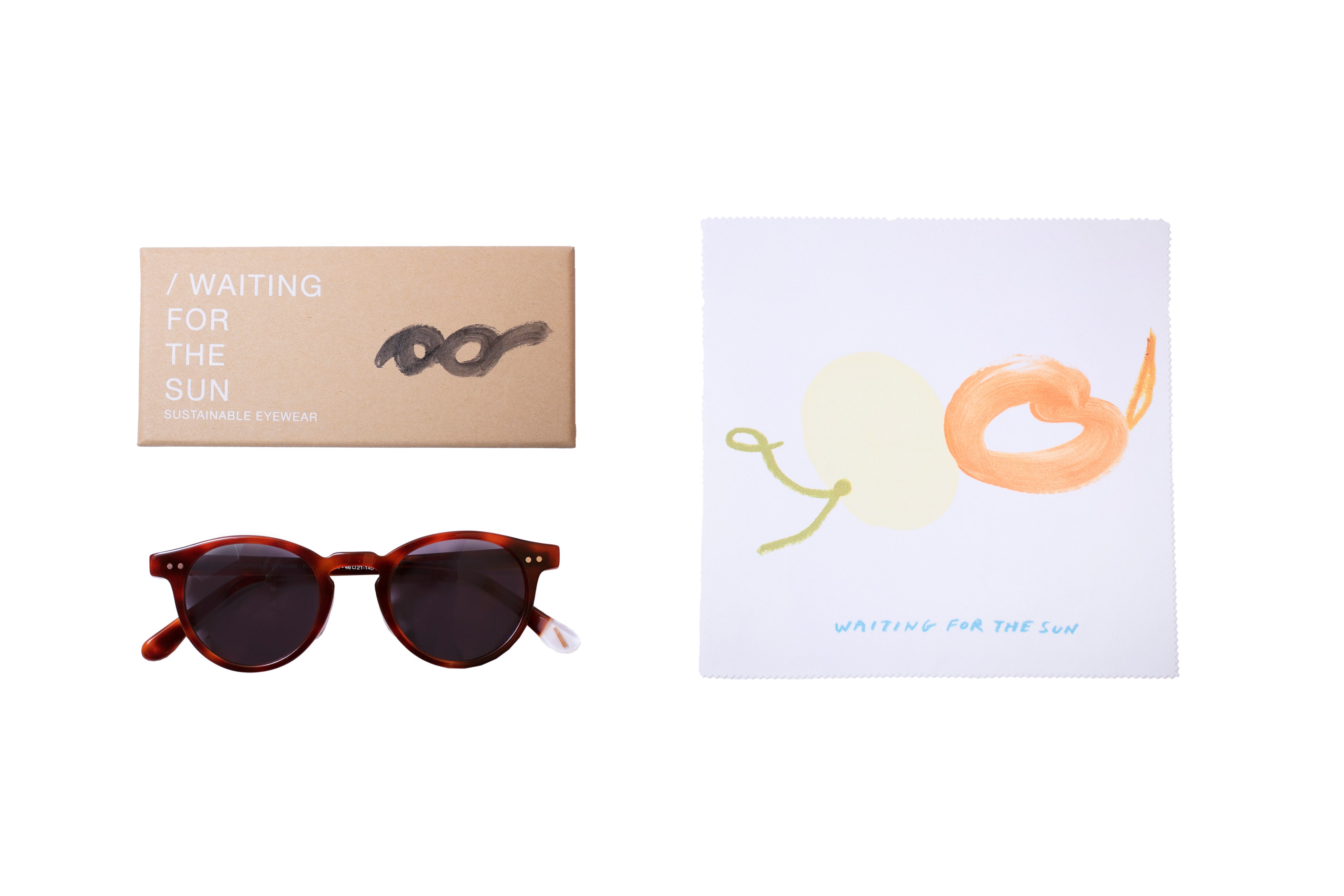 フランス(パリ)のサスティナブルアイウェアブランドWAITING FOR THE SUN (https://www.instagram.com/waitingforthesun_jp/?hl=ja) の2022 Spring/Summerコレクションにアーティストの Mayumi Yamaseさんをコラボレーションパートナーに迎え、ブランドの定番モデルでもある2型Auguste, Raymond (ASIAN FIT)のフレームとレンズを彼女自身に組み合わせてもらい、付属のクリーニングクロスとクラフトボックスにデザインを描きおろしてもらいました。クリーニングクロスのデザインは抽象的なペインティングを用いて、”サングラス”と”太陽の暖かさ”を表現しています。クラフトボックスはクレヨンを使用し、アイコニックな”めがね”を書いてもらいました。