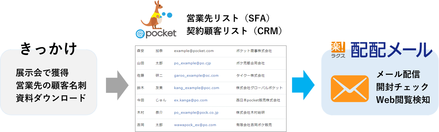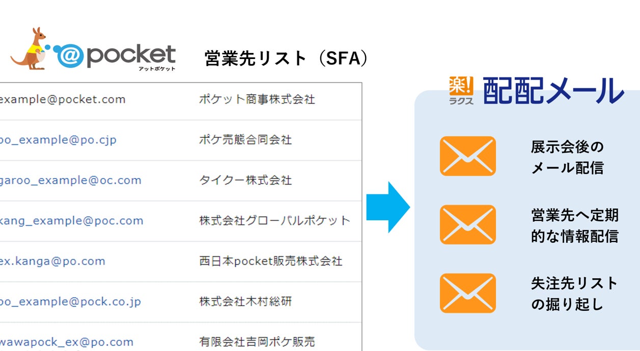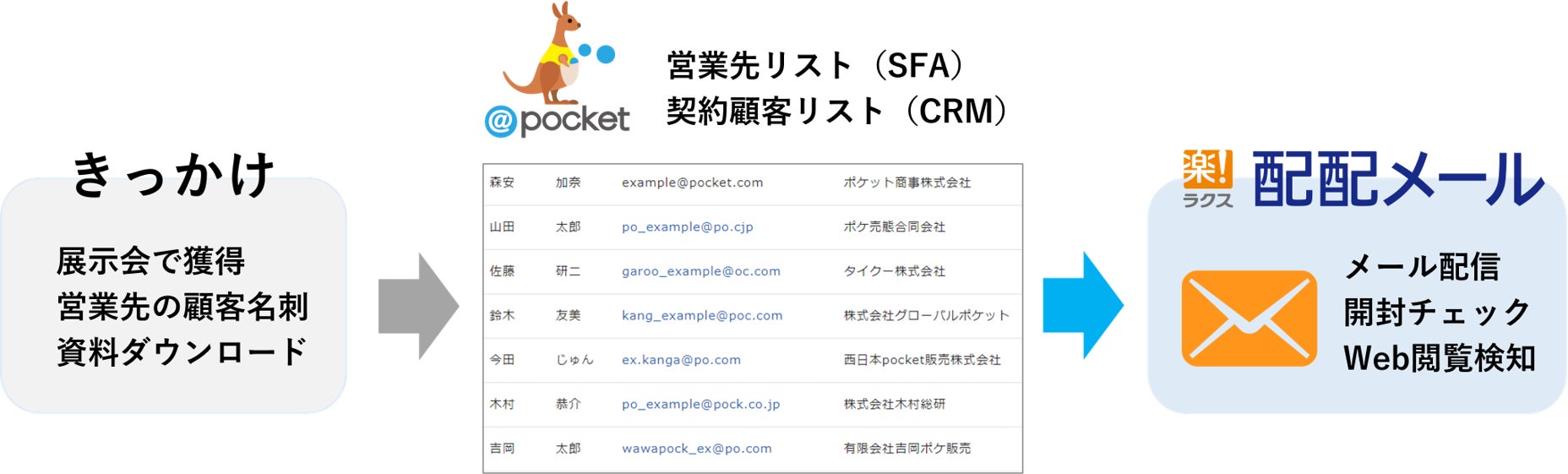 「@pocket」で管理している顧客データを「配配メール」に連携することで、メールマーケティングの実践を可能とし、商談創出や売上向上、顧客満足度向上などが期待できます。