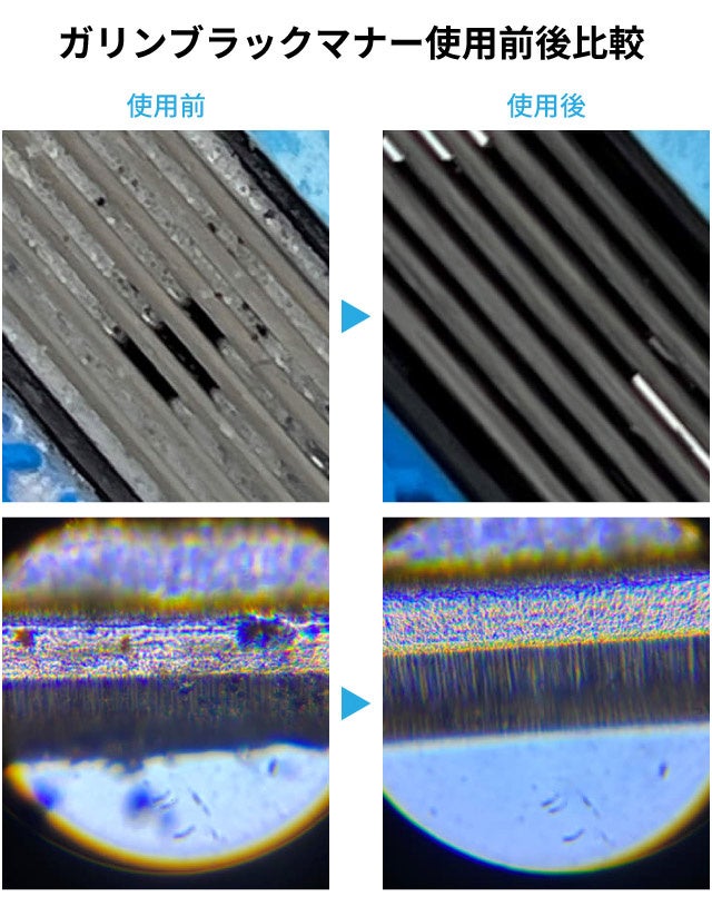 「GALLINE BLACK MANNER」(ガリンブラックマナー)は、誰でも簡単に使用できる点も魅力です。特別な技術や手間が不要で、わずか数秒のケアで刃の切れ味を復活させられるため、忙しい朝の時間も有効に使えます。