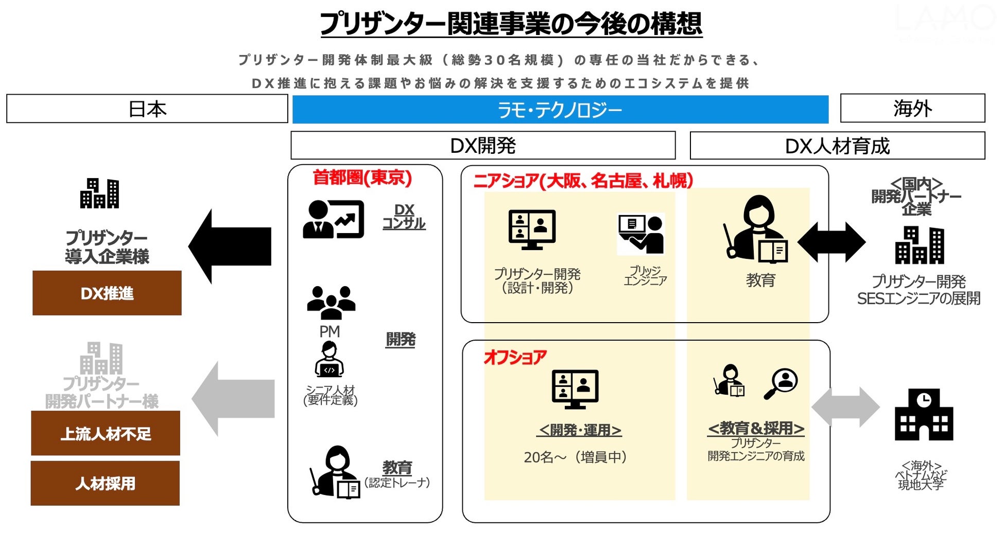 さらに、オフショア開発も手掛けるラモテクでは、提携先の海外オフショア地域におけるプリザンターのエンジニア育成にも今後取り組んでまいります。