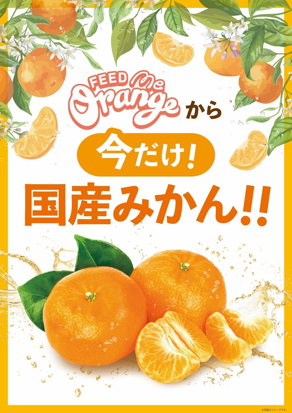 この度は、Feed ME Orangeにおける新たなサービス価値提供の一環として、みかんが旬となる季節限定で国産みかんを使用した「生搾りみかんジュース」をご提供します。まずは関東エリア22ヵ所、関西エリア11ヵ所でサービスを開始し、今後は同サービスを提供するマシンの台数およびエリアを順次拡大していく予定です。