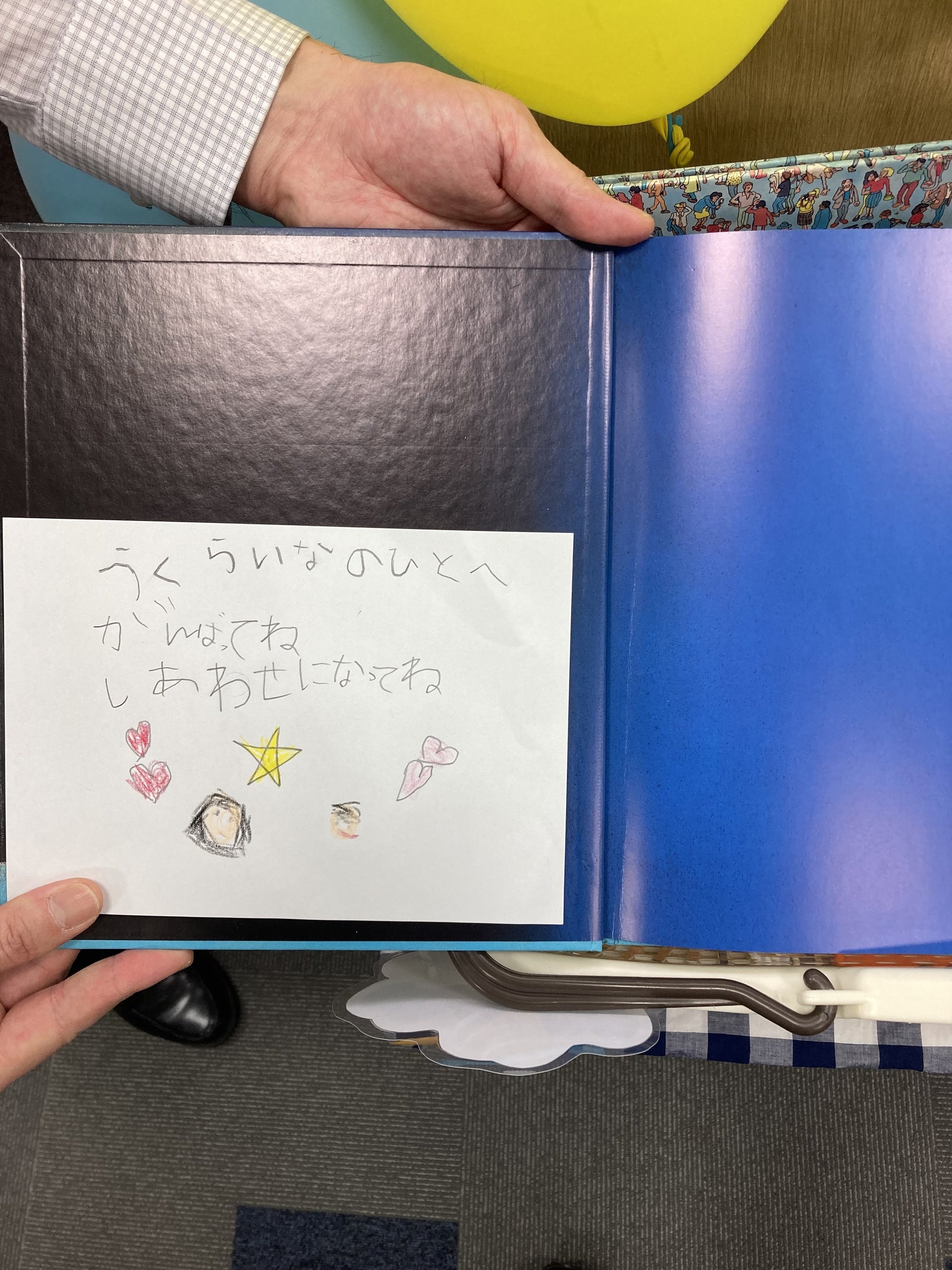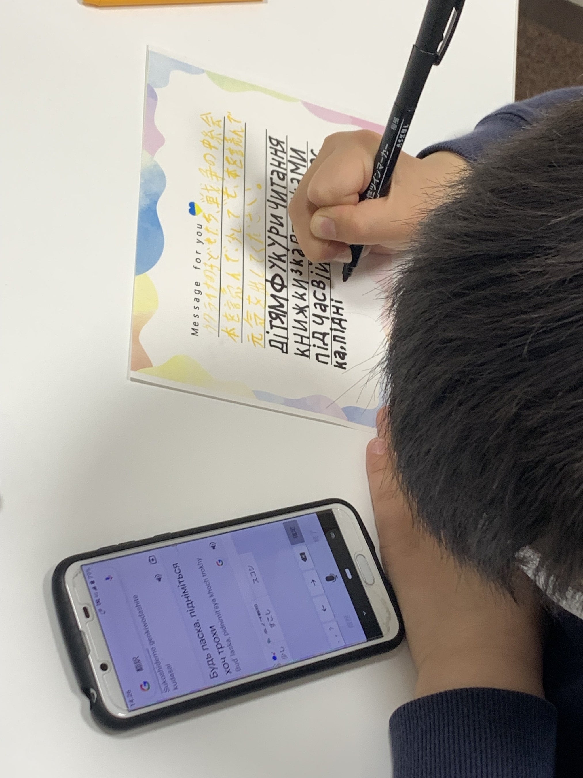 絵本と共にいただいたメッセージの中には、子ども達からのウクライナ語で書かれたメッセージや、「おうえんしているよ」などの、あたたかい言葉もありました。