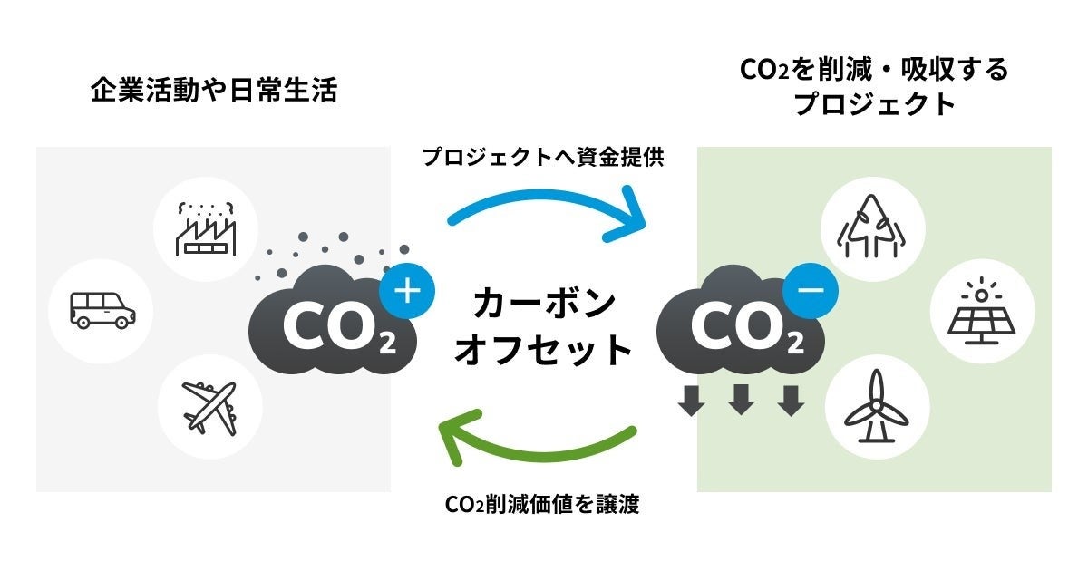 企業活動や日常生活で排出されるCO2などの温室効果ガスを、他の場所で削減・吸収する活動をすることによって埋め合わせする仕組みです。気候変動を緩和させるための有力な手段として注目されています。