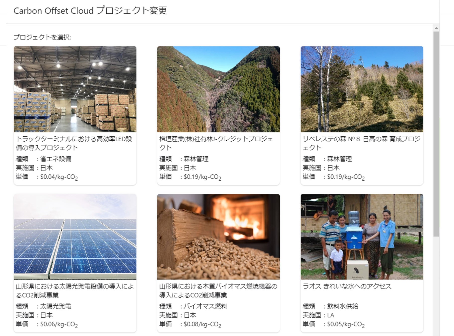 CO2を削減・吸収するプロジェクトは、環境省などが運営しているJ-クレジット制度で認証された、日本全国の様々なCO2排出削減・吸収プロジェクトのクレジットを取り揃えています。ラインナップは順次拡大する予定です。
