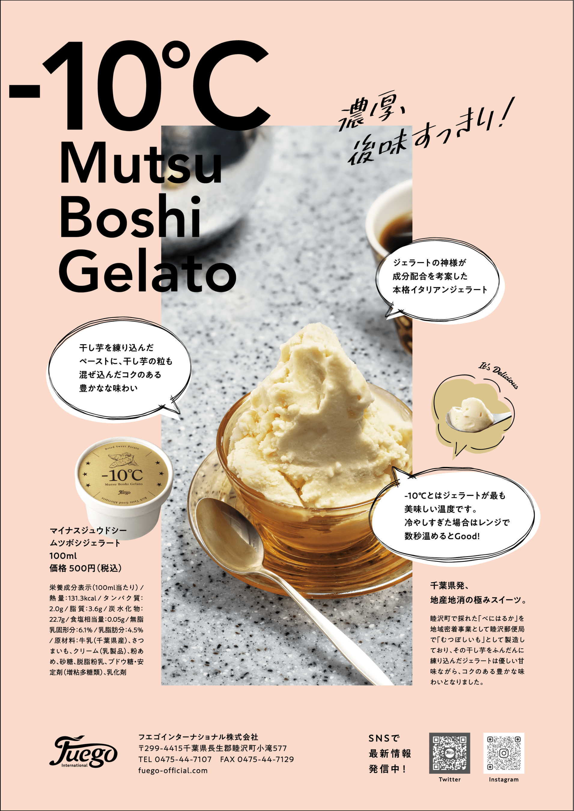 地域課題解決型企業を目指すフエゴインターナショナルが千葉県睦沢町の特産品である干しいもをアップサイクルし、ふんだんに練り込んだプレミアムジェラートの販売を開始。