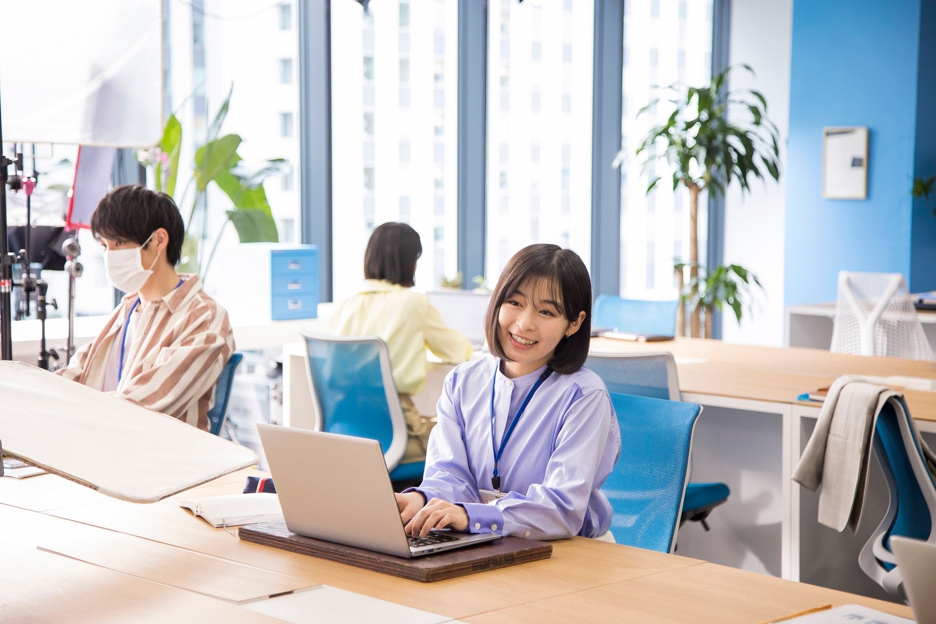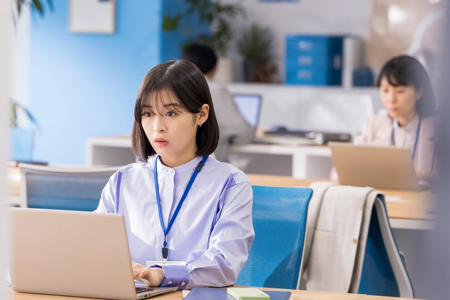 オフィスでの仕事中、「あっ!」と何かに気づく森さん。
