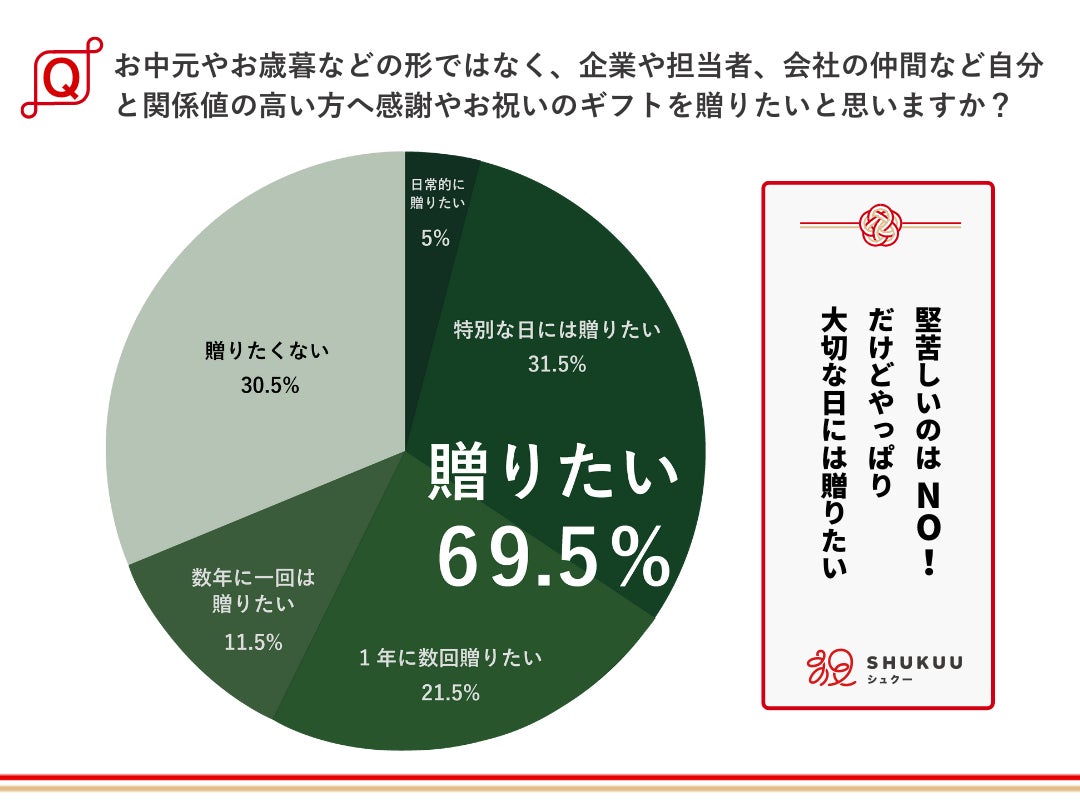・贈答のニーズ:69.5%がギフトを「贈りたい」と回答、うち31.5%が「特別な日に贈りたい」
