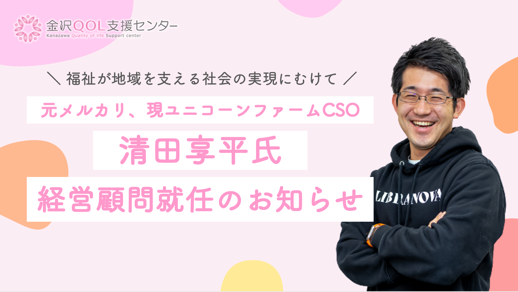 元メルカリ、現ユニコーンファームCSOの清田享平氏が障害者就労支援サービスを展開する金沢QOL支援センター株式会社の経営顧問に就任
