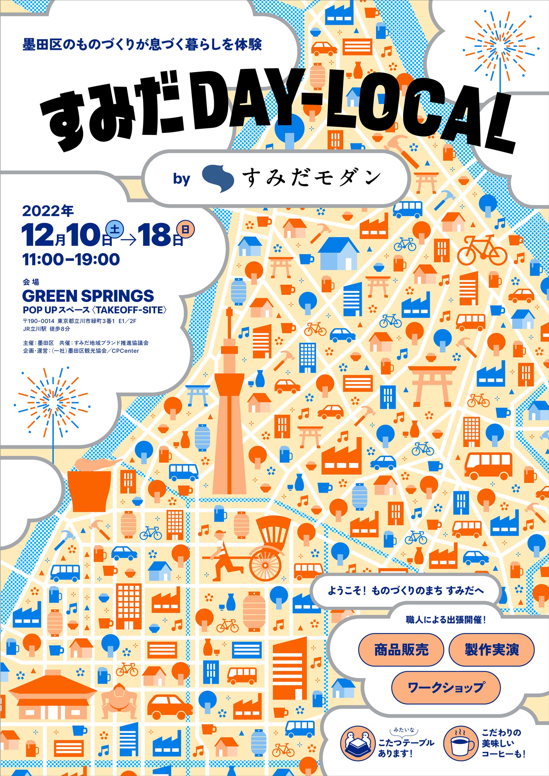 墨田区(区長:山本 亨)が推進する地域ブランド「すみだモダン」のポップアップイベント「すみだDAY-LOCAL by すみだモダン」を2022年12月10日(土)〜18日(日)の期間、複合施設 GREEN SPRINGS(立川市)にて開催いたします。