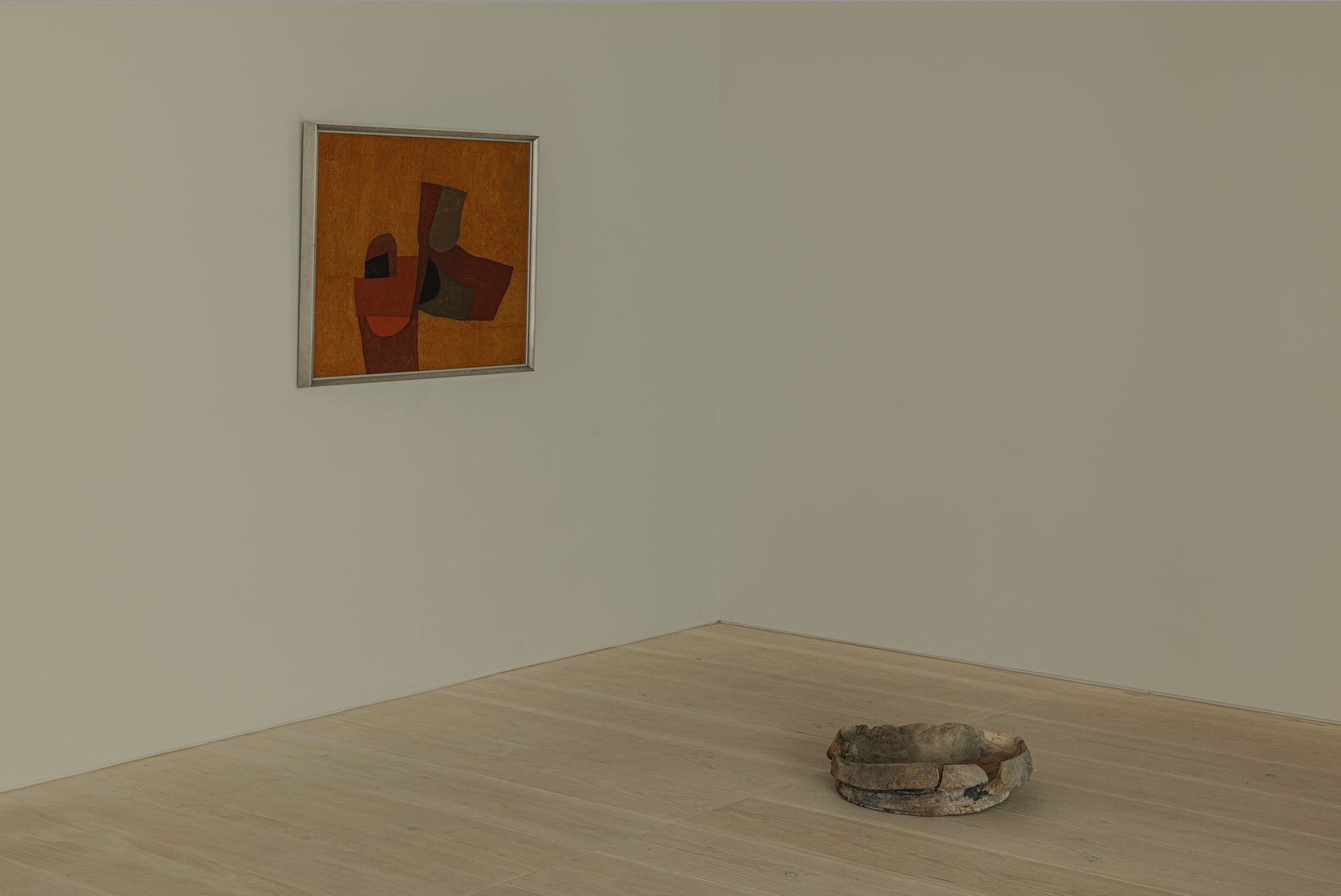 本作品は、1995 年に制作された皿で、日本の楽焼に倣った薪窯で焼かれている。1980 年代以降、ヴォーコスは小ぶりな器や皿など、ろくろを使った制作を再開する。本作品は、その形状から皿であることは認識できるが、裂かれた塊、不揃いな形、ひび割れた表面からは、大作と同様のエネルギーが感じられる。