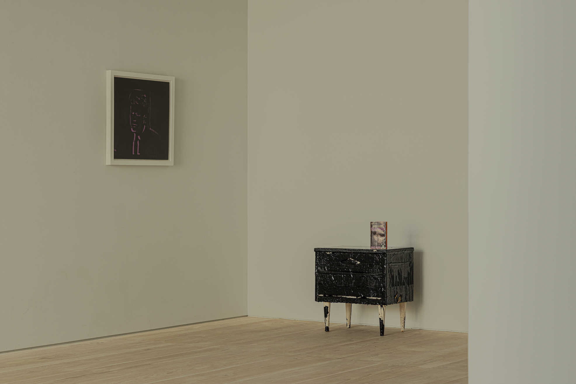 木製のナイトテーブルを再利用し、タールで黒く塗り重ねた彫刻作品の本作品《Night Stand for Soul Sister》には、作品の一部として、物議を醸した一冊の本、グレース•ハルセル著『Soul Sister ( 黒い肌は知った )』が添えられている。『So ul Sister』は、ハーレムとミシシッピで黒人女性としての日常を体験するために肌を黒くした白人ジャーナリストの物語である。この本が出版された 1969 年は、公民権運動によってアメリカにおける人種差別が撤廃された翌年のことで、他の多くの作品と同様に、ゲイツは本作でもアフリカ系アメリカ人としての経験や歴史へと直接言及している。本の表紙を覆う暗い色は、ナイトスタンドを覆うタールの粘性のある光沢と対照的に写り、上述の白人ジャーナリストの黒塗りした顔と、タールで黒く塗られた白い木製ナイトスタンドとを結び付けている。タールは、シカゴのサウス•サイドでタール屋根の職人として働いていた亡き父への敬意を込め、ゲイツがしばしば作品中に取り入れる素材である。同素材はゲイツにとっての父の象徴であると同時に、都市産業におけるブラックの労働者としての役割を象徴するものである。本作品は、アメリカに蔓延る人種的そして政治的背景に対する力強いメッセージを発しており、鑑賞する者に、展示物に内在する重曹的な意味合いや含意とじっくり向き合うように促しているのである。