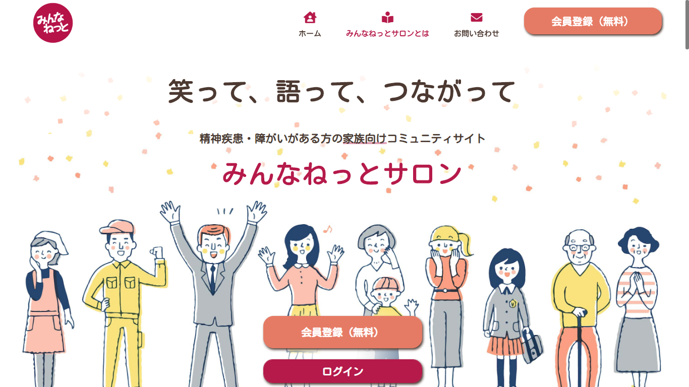 2020年9月末に公開した「みんなねっとサロン」は、精神障害者のご家族に特化したコミュニティサイトです。孤