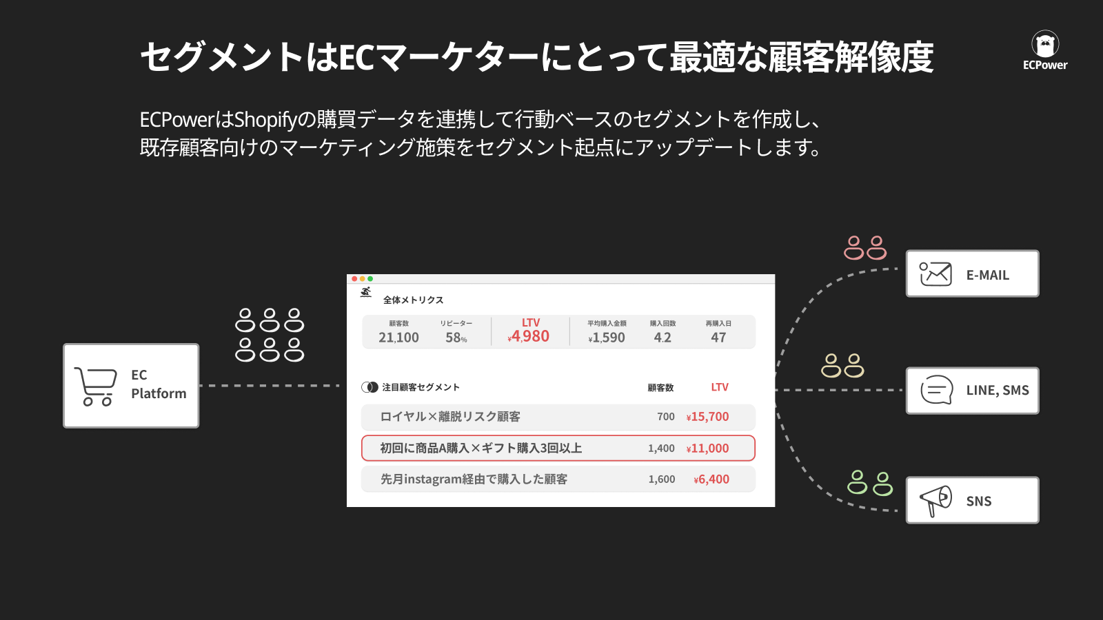 LTV向上をめざすECマーケターのためのShopifyアプリ『顧客セグメントツール ECPower』をリリース。
