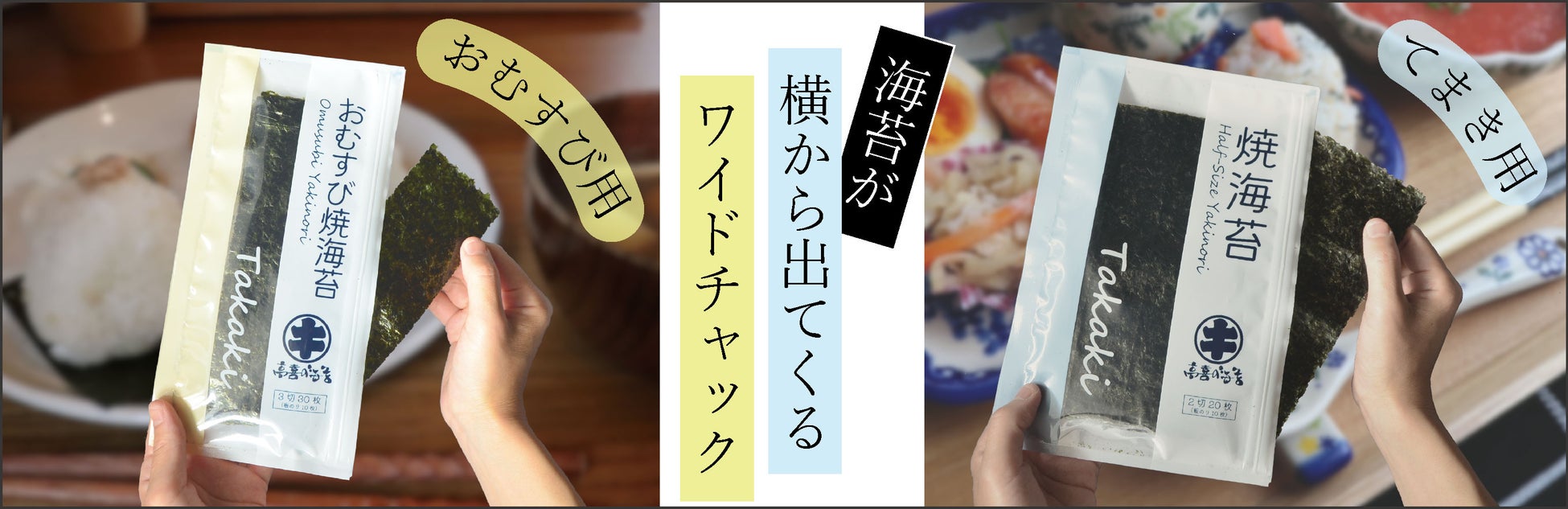 ご家庭でよく利用されるシーンに合わせた「おむすび用」と「手巻き用」の2商品のラインナップをご用意いたしました。