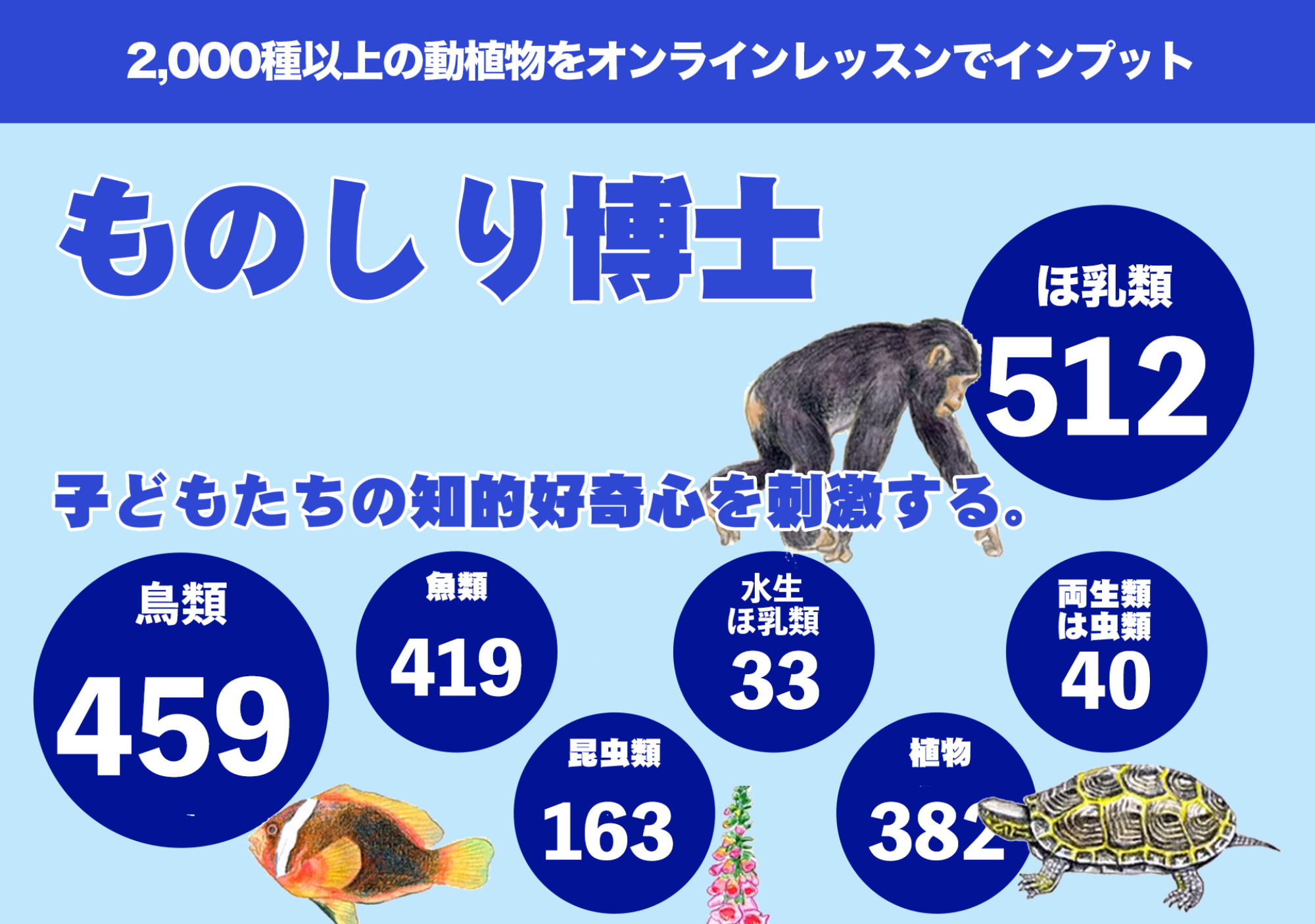 子どもの知的好奇心を刺激する、動植物2,000種類をオンラインで学習できる『ものしり博士』が新発売