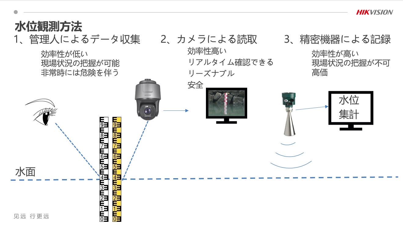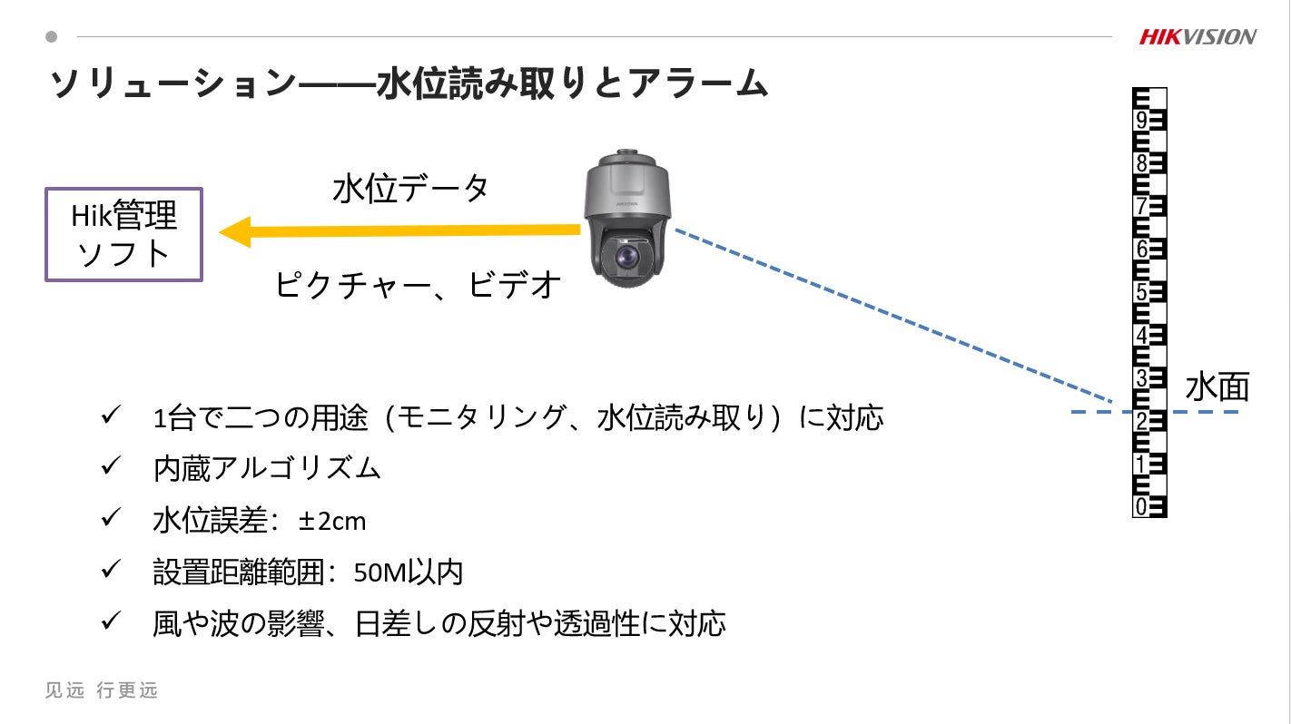 ハイクビジョンは水害予防に対し、水位を観測できるカメラを提案します。優れたライブ映像だけでなく、水位を監視するAI技術を組み込んだオールインワン製品を提供します。