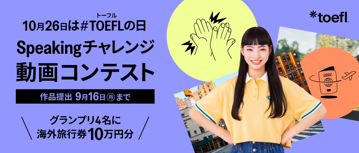 ETS Japan合同会社(所在地:東京都千代田区 カントリーマネージャー:根本 斉)は、10月26日の「TOEFLの日」(※)を記念して、すべての世代の方に英語に親しみ楽しんでいただける企画として、“60秒以内であなたの想いを英語で語ろう!「Speakingチャレンジ動画コンテスト」”を開催いたします。