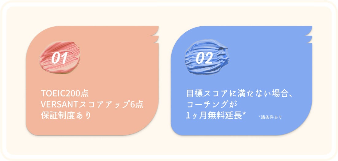 最初の一歩をためらう方もTOEIC200点、VERSANT6点のスコアアップを保証しているため、安心して学習に取り組むことができます。