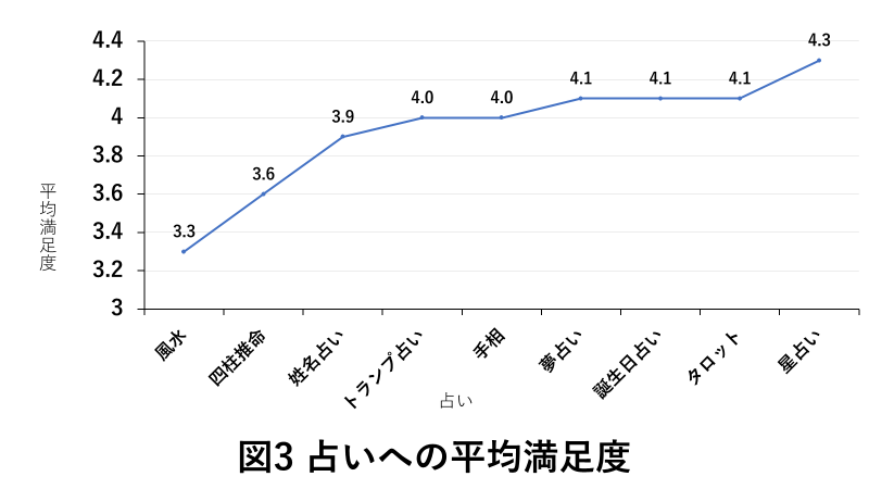 最も満足度の高い占いは「星占い」に対し、「風水」の満足度に関しては最も低いことが明らかとなりました。