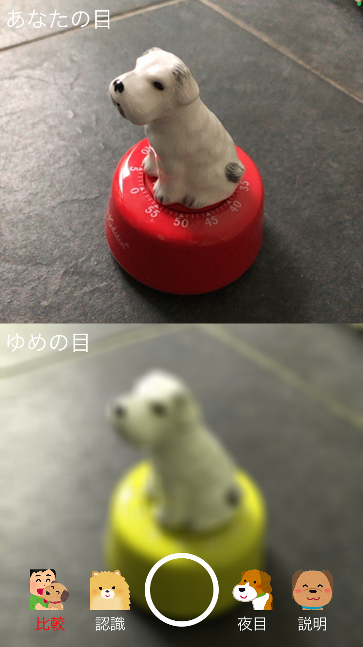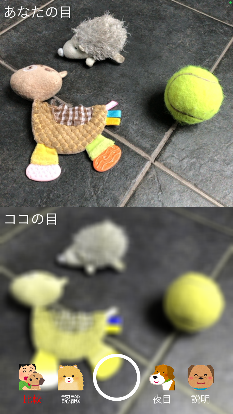 - 注意事項:本サービスは、研究機関等により公開されている犬の視覚データを使い、犬の視覚を疑似シミュレートするアプリです。医療機関での診断に代わるものではなく、確定的な診断を行うものではありません。