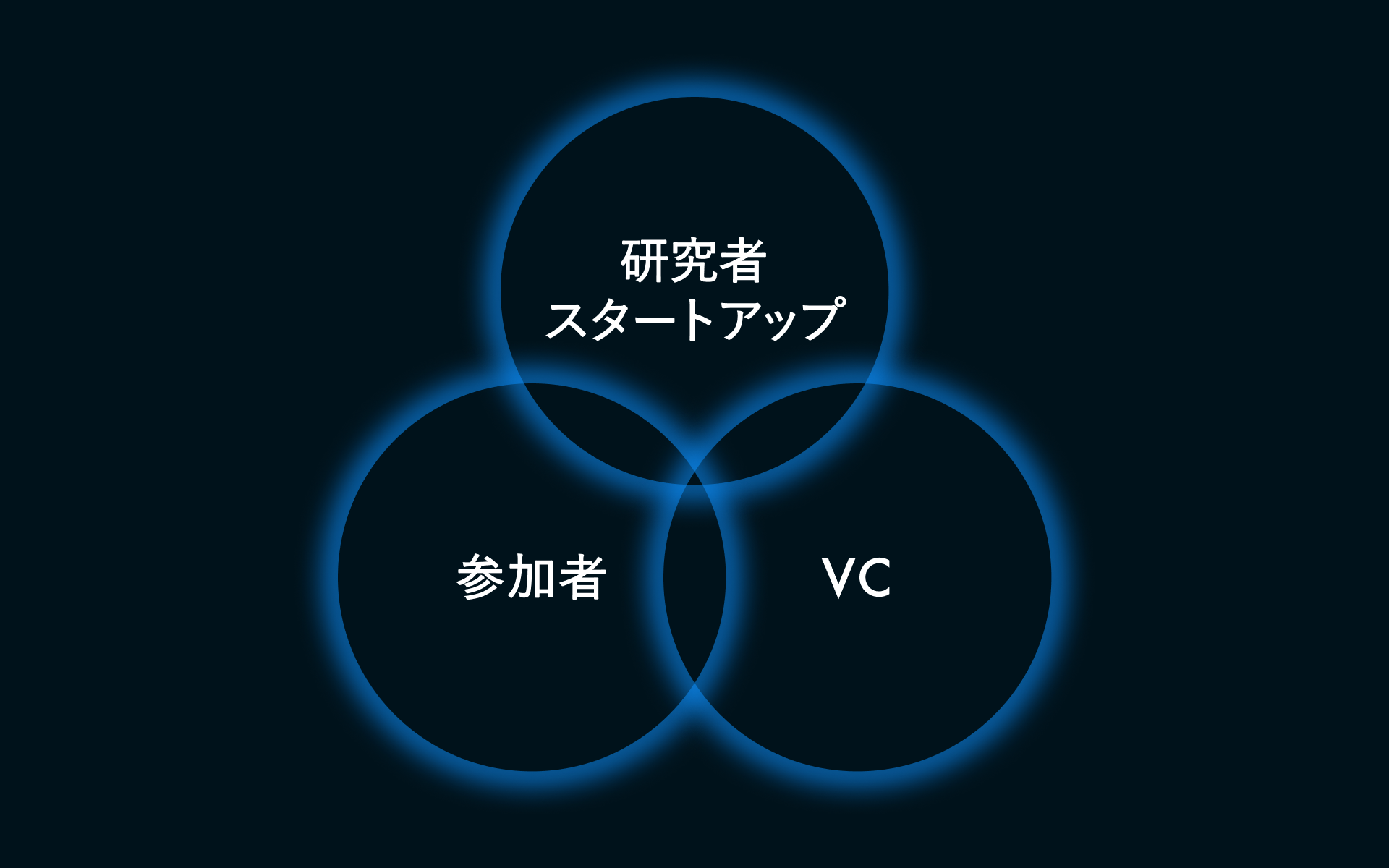 創業前後のディープテックスタートアップ経営者やシーズ技術を保有する大学研究者と、ベンチャーキャピタリスト、世界を変える可能性を秘めた技術の社会実装に関心のあるエグゼクティブな方々が参加するクローズドなビジネスコミュニティです。