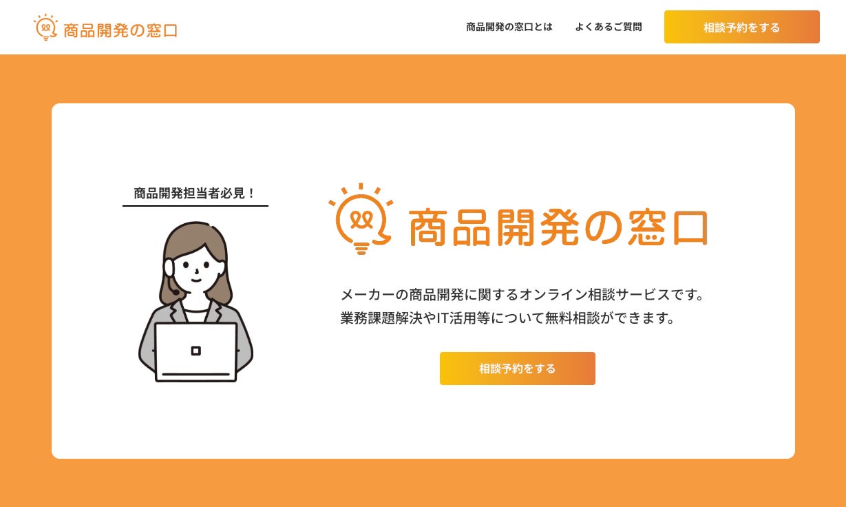 メーカーの商品開発に関する課題解決やIT活用を支援するオンライン相談サービスです。