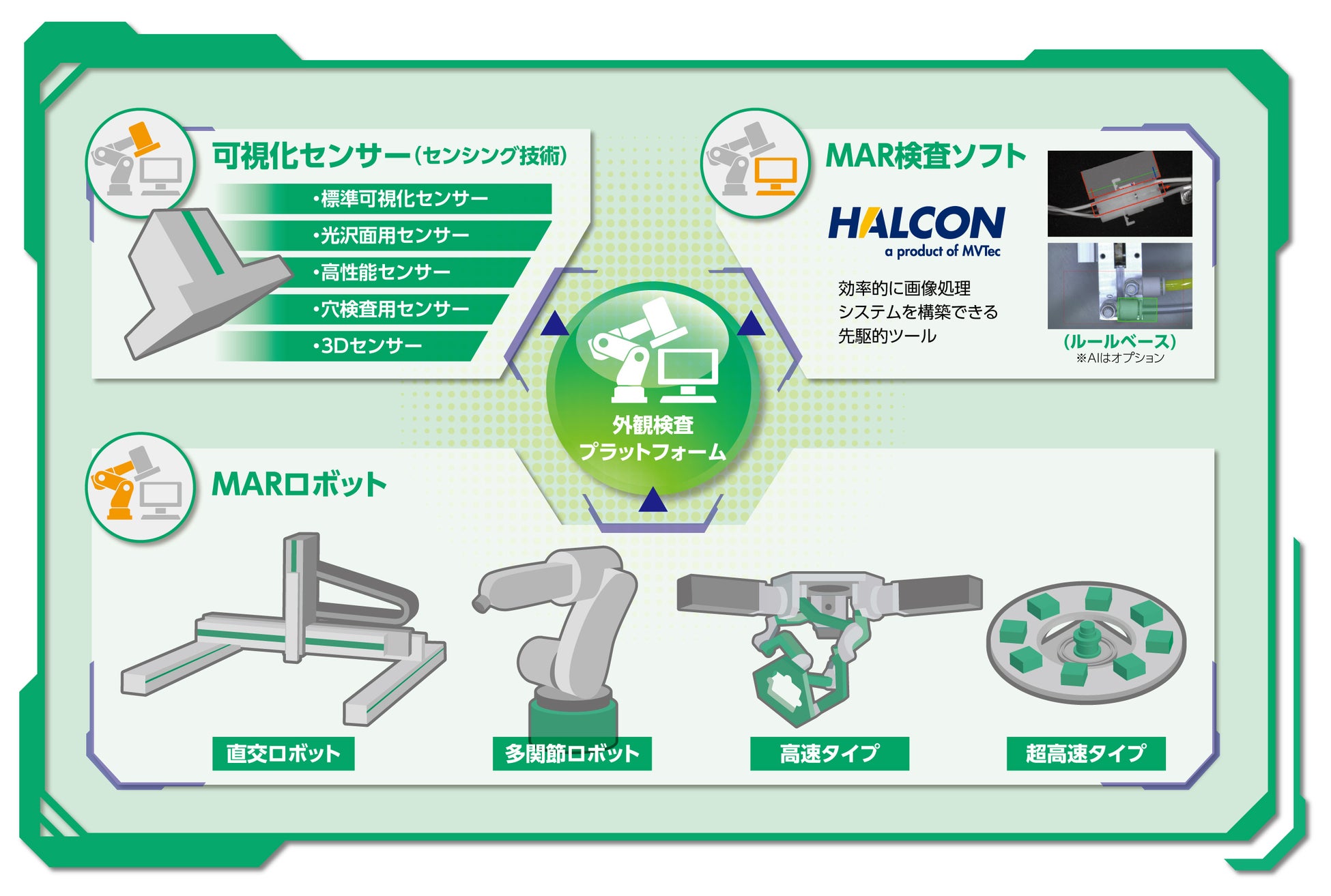 ブースでは、「多面 外観検査プラットフォーム」MARシリーズのご紹介と、目視検査自動化のための基準づくり相談会を行います。