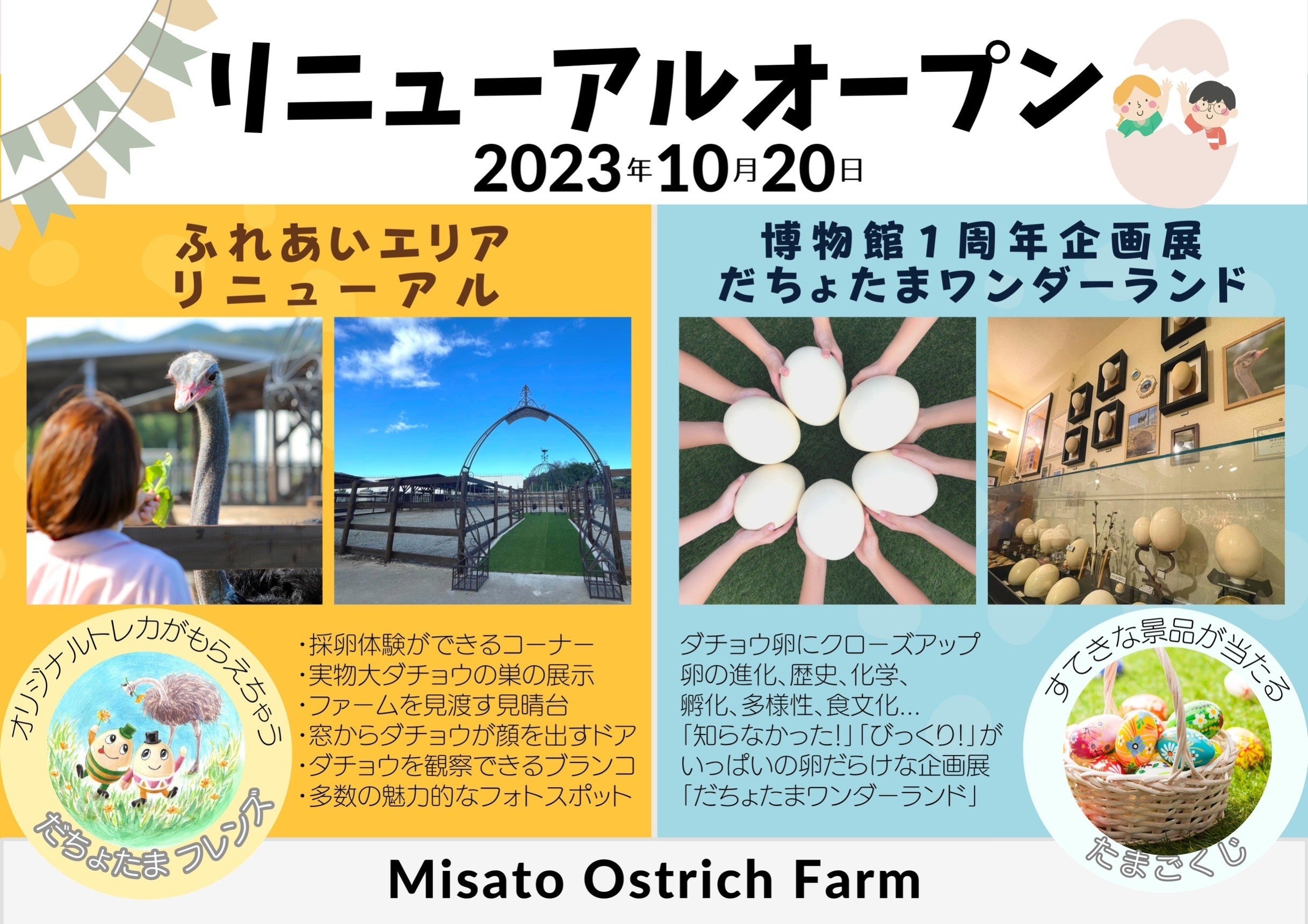 新しい体験を! 美里オーストリッチファーム 「ふれあいエリアのリニューアル」と「Ostrich Museum」の一周年企画展