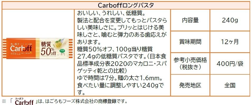 ▼特設サイトURL :https://www.hagoromofoods.co.jp/carboff