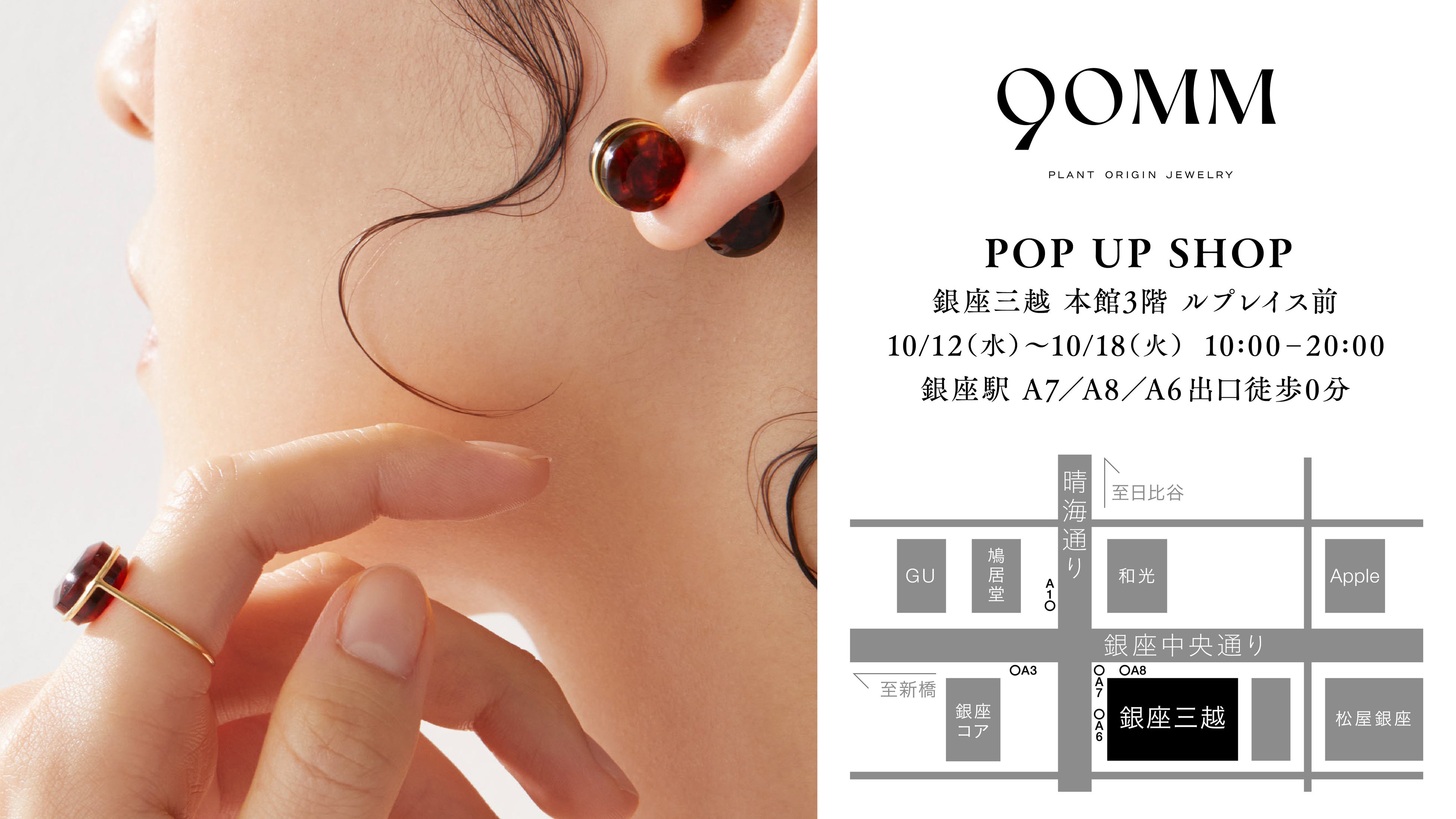 『90MM』は、日本最大の琥珀専門企業である久慈琥珀株式会社と協業し、琥珀ジュエリーに特化したブランドとして今年6月にリングやピアスなど計4型を First Collection として発表しました。