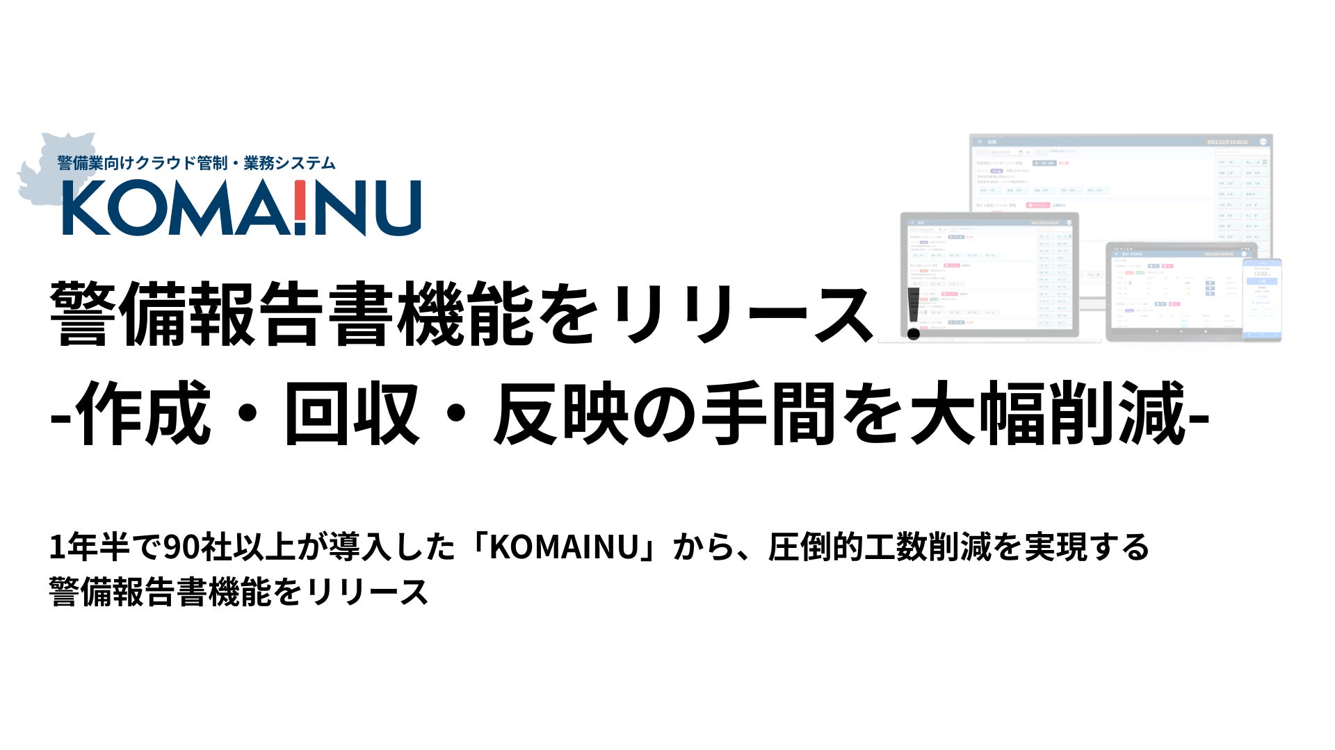 【警備業DX】警備業向けクラウド業務システム「KOMAINU」、警備報告書機能をリリース! -作成・回収・反映の手間を大幅削減-