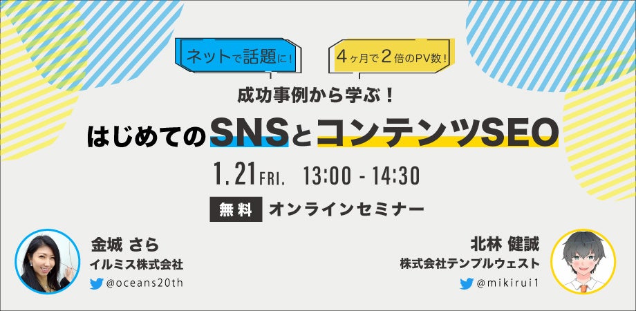 コンテンツマーケティングサービス及びマーケティングコンサルティングサービスを提供している株式会社テンプルウェスト(代表 : 寺西 洸輝、以下「テンプルウェスト」:本社大阪府大阪市)は、SNSマーケティングサービスやコンサルティングを提供するイルミス株式会社と1月21日(金)に、コストを抑えてDXを推進する!BtoB業界向け「成功事例から学ぶ!はじめてのSNSとコンテンツSEO」をテーマにしたオンラインセミナーを開催します。