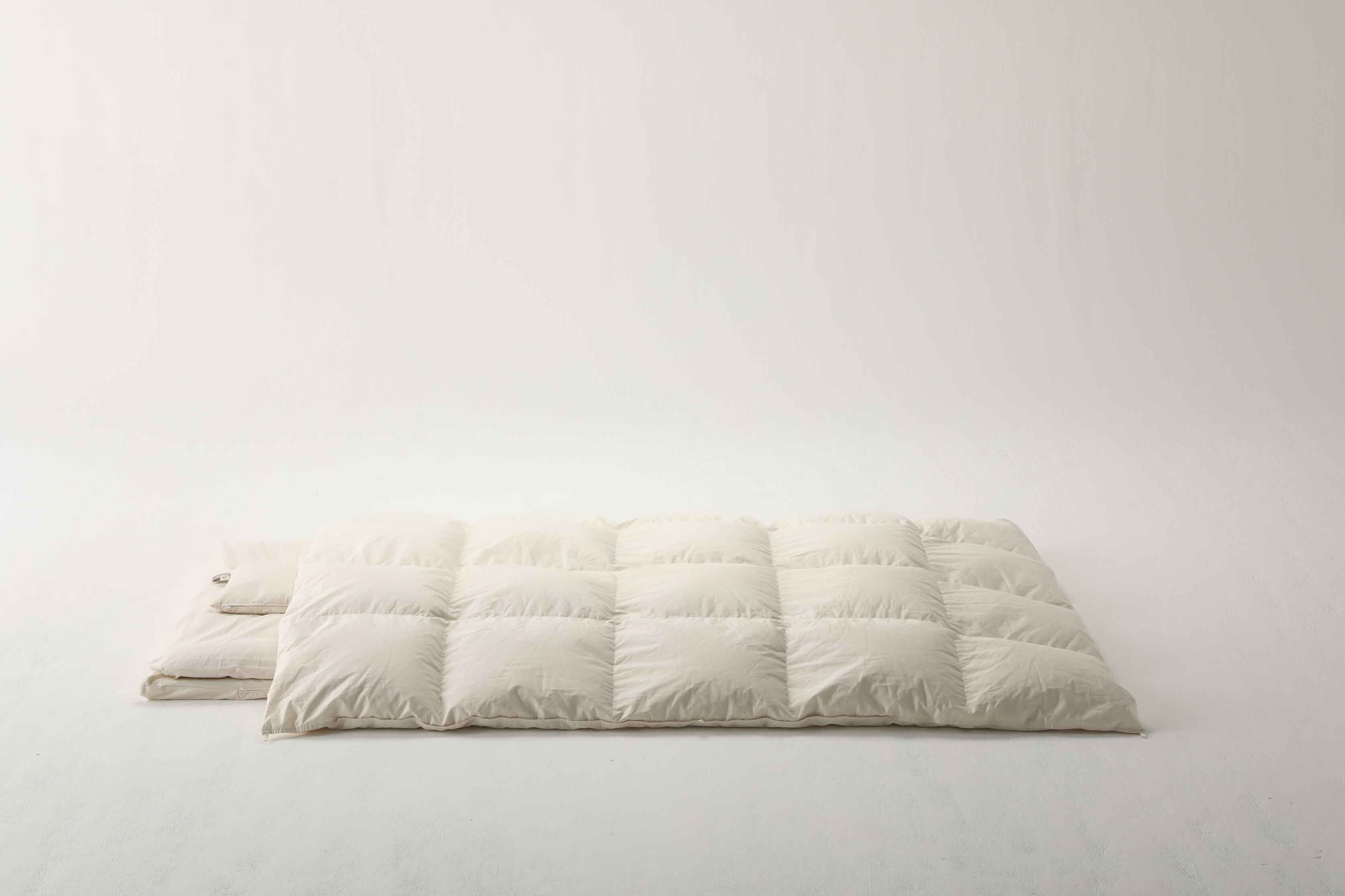 オーガニック羽毛ふとん(S)、オーガニック掛カバー(S)、オーガニックブランケット(S)各1枚