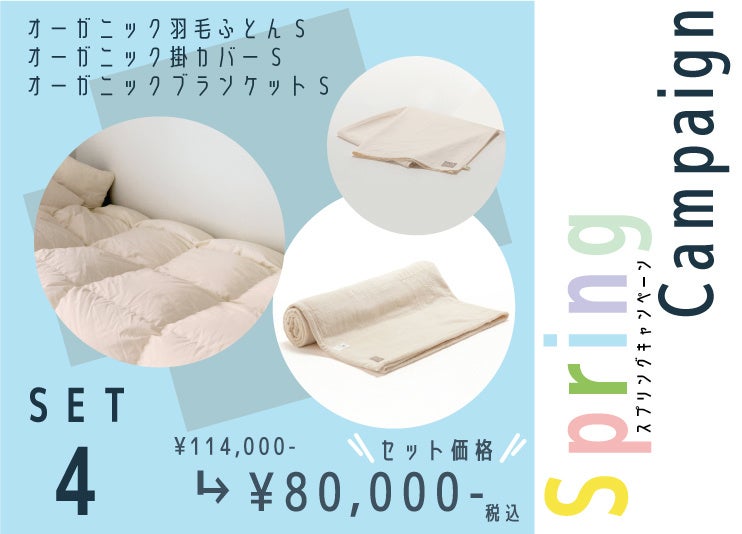 ■オーガニックコットンで始める、シンプルな暮らし、上質な眠りから。オーガニック寝具一式セット。