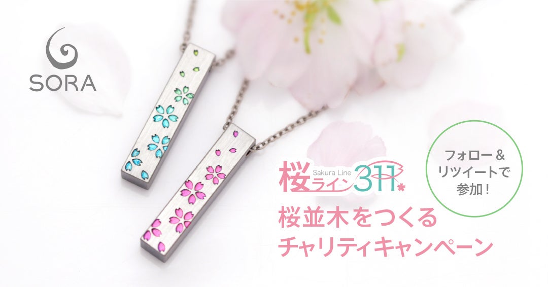 オーダーメイドブライダルジュエリー専門店SORA(本社:東京都渋谷区、代表取締役社長:丸山聰)は、東日本大震災で津波の被害を受けた岩手県陸前高田市の津波到達地点に桜並木をつくるプロジェクトを応援するチャリティキャンペーンを開催します。