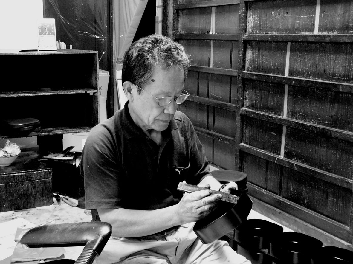 漆塗師でありながら木地となる桧(ひのき)を曲げるところから製作する独自のスタイルを確立し、精力的に多くの作品や商品を世に送り出しました。