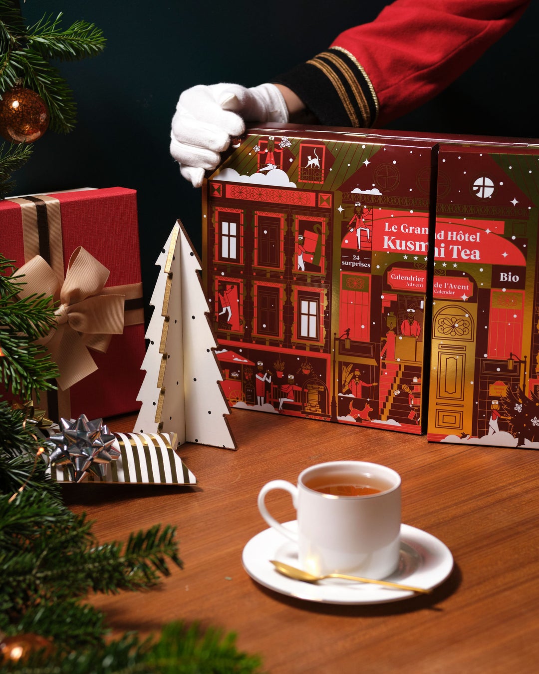 12月1日から24日まで毎日ワクワクしながら開けるカレンダーの窓には、たくさんのサプライズが隠されています。ブラックティー、グリーンティー、ホワイトティー、スパイスたっぷりのお茶、ハーブティー.... 最新のクスミティーフレーバーもお楽しみいただけます。さらにはティータイムに欠かせないアクセサリーも!
