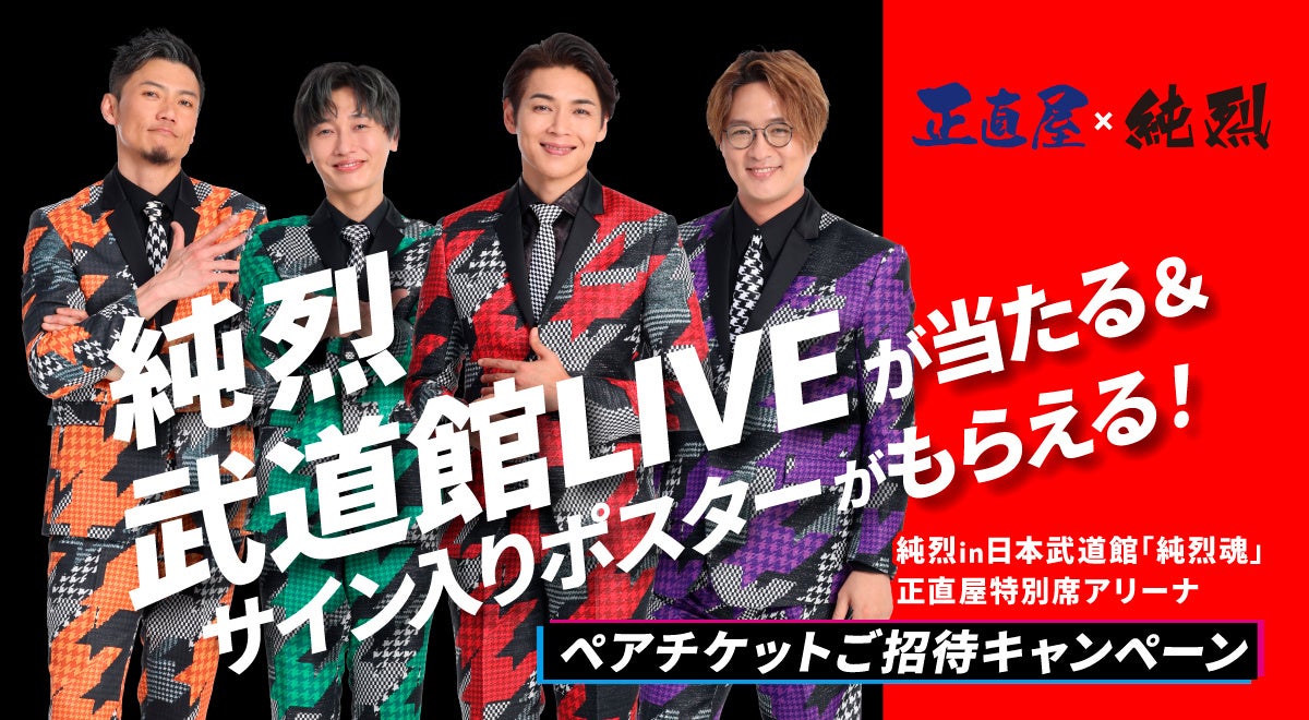 『純烈in日本武道館「純烈魂」正直屋特別席アリーナ ペアチケットご招待キャンペーン』が9月1日より開始