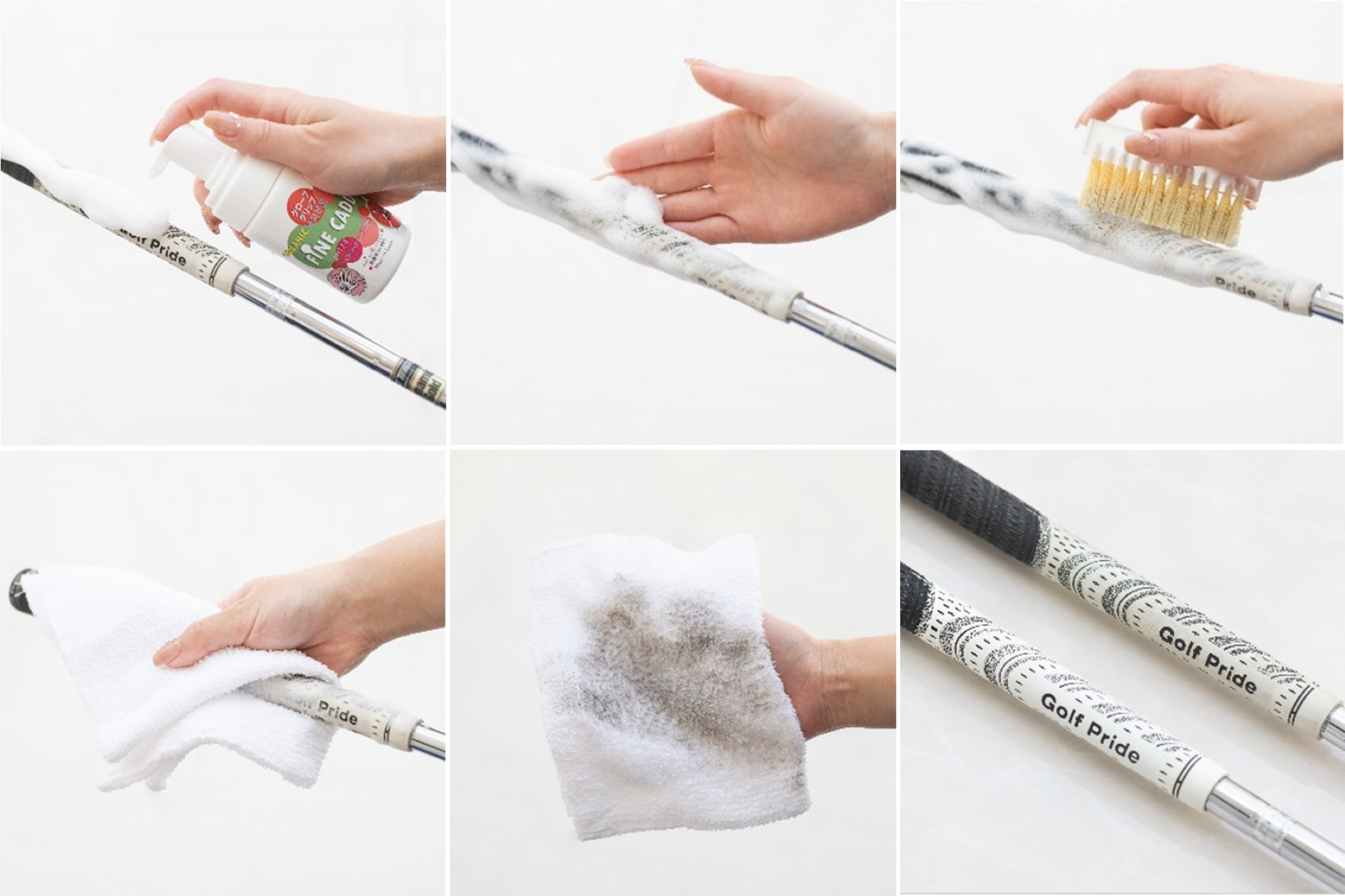 フィーネキャディのグリップ&グローブ泡クリーナーは、グリップ素材となるラバーやエラストマーに優しく汚れを落とし、グリップ本来の柔らく滑りにくい質感が蘇ります。