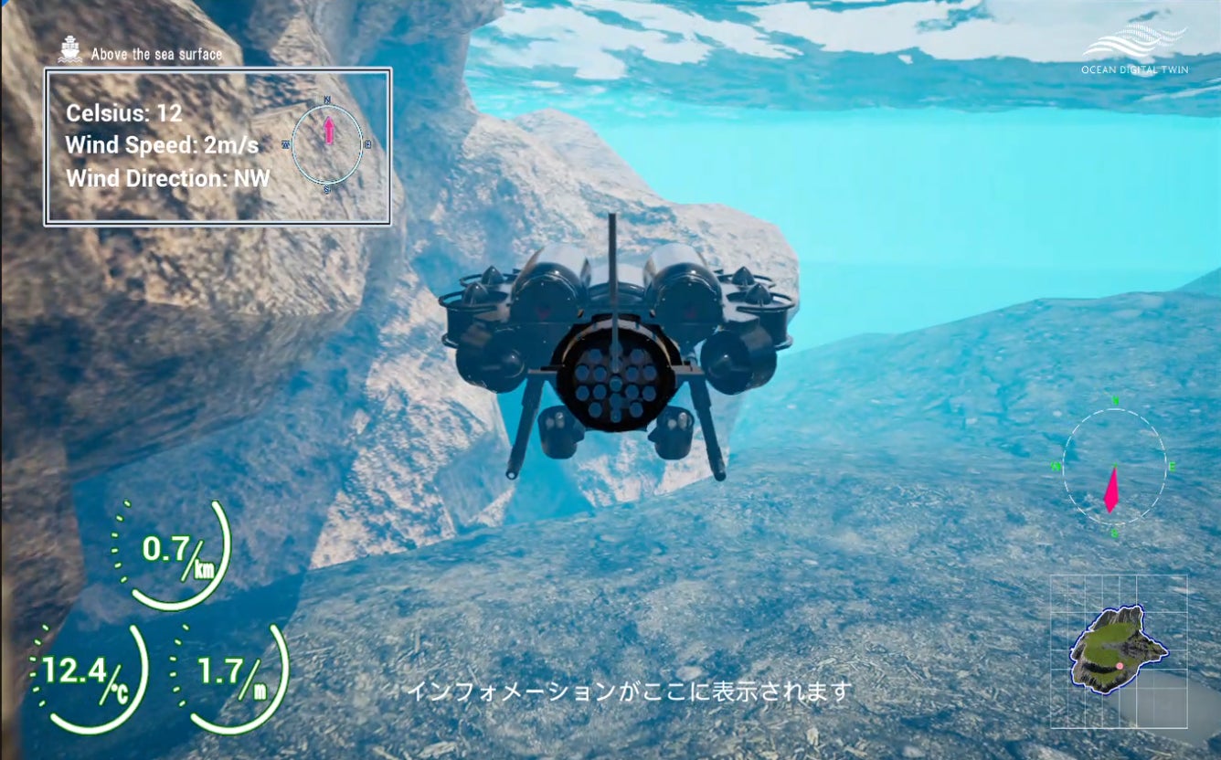 具体的には、長崎大学で研究が進む水中ドローンの研究内容をテーマに、コミュニティメディアのデジタルツイン構築技術を活用して、海洋・水中環境をUnreal Engine5上で構築していきます。