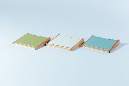 リビングやダイニングなどどこにでも持ち運べて学習スペースに出来ます。天板の傾斜により姿勢が起き上がる効果があります。丸棒は持ち歩く時の取手になり本を置くためのスタンドホルダーにもなります。