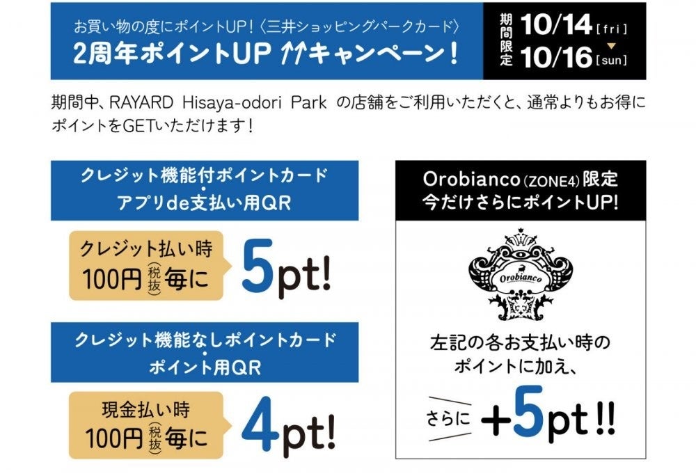 - 「RAYARD Hisaya-odori Park 2周年ポイントアップキャンペーン」概要