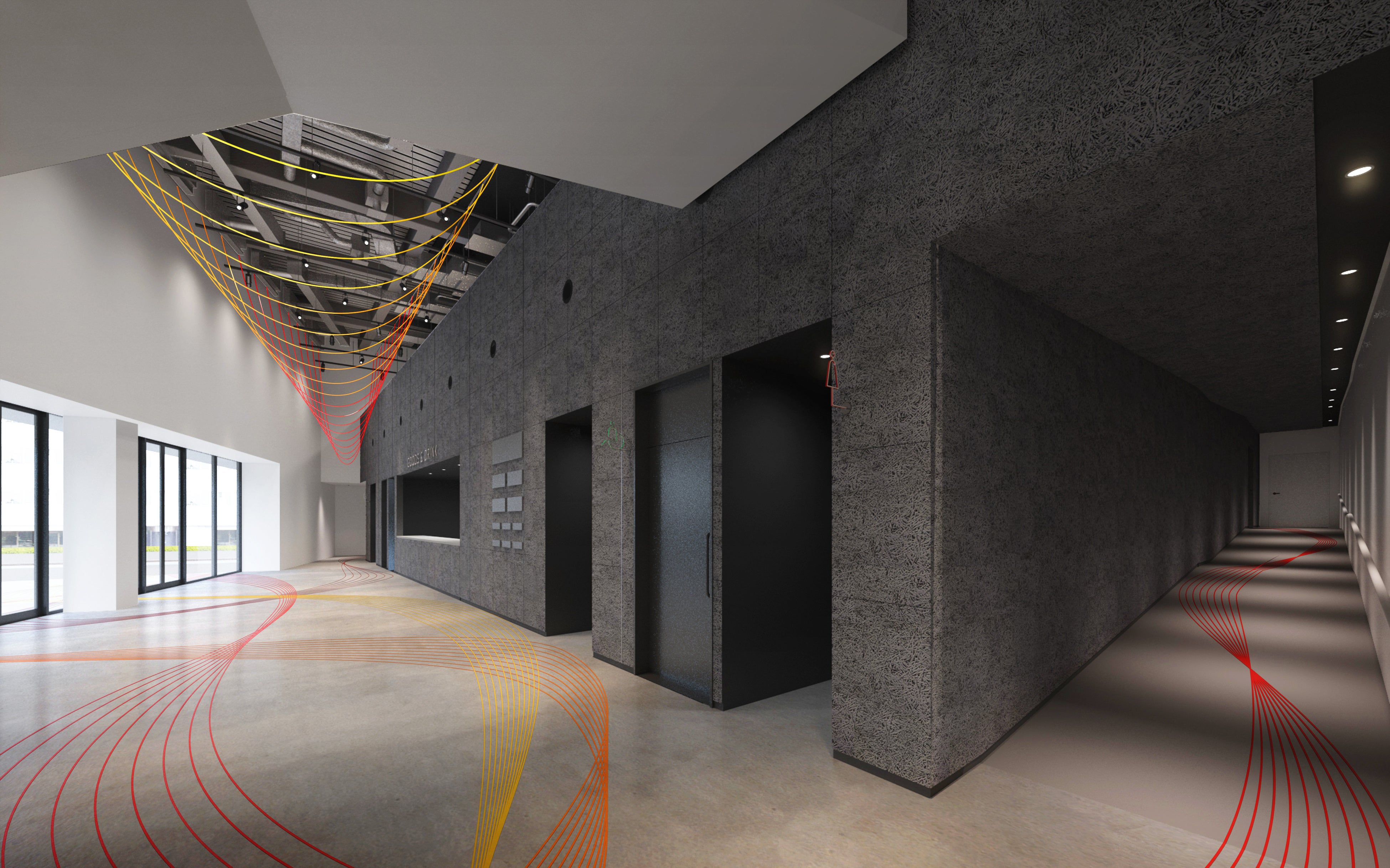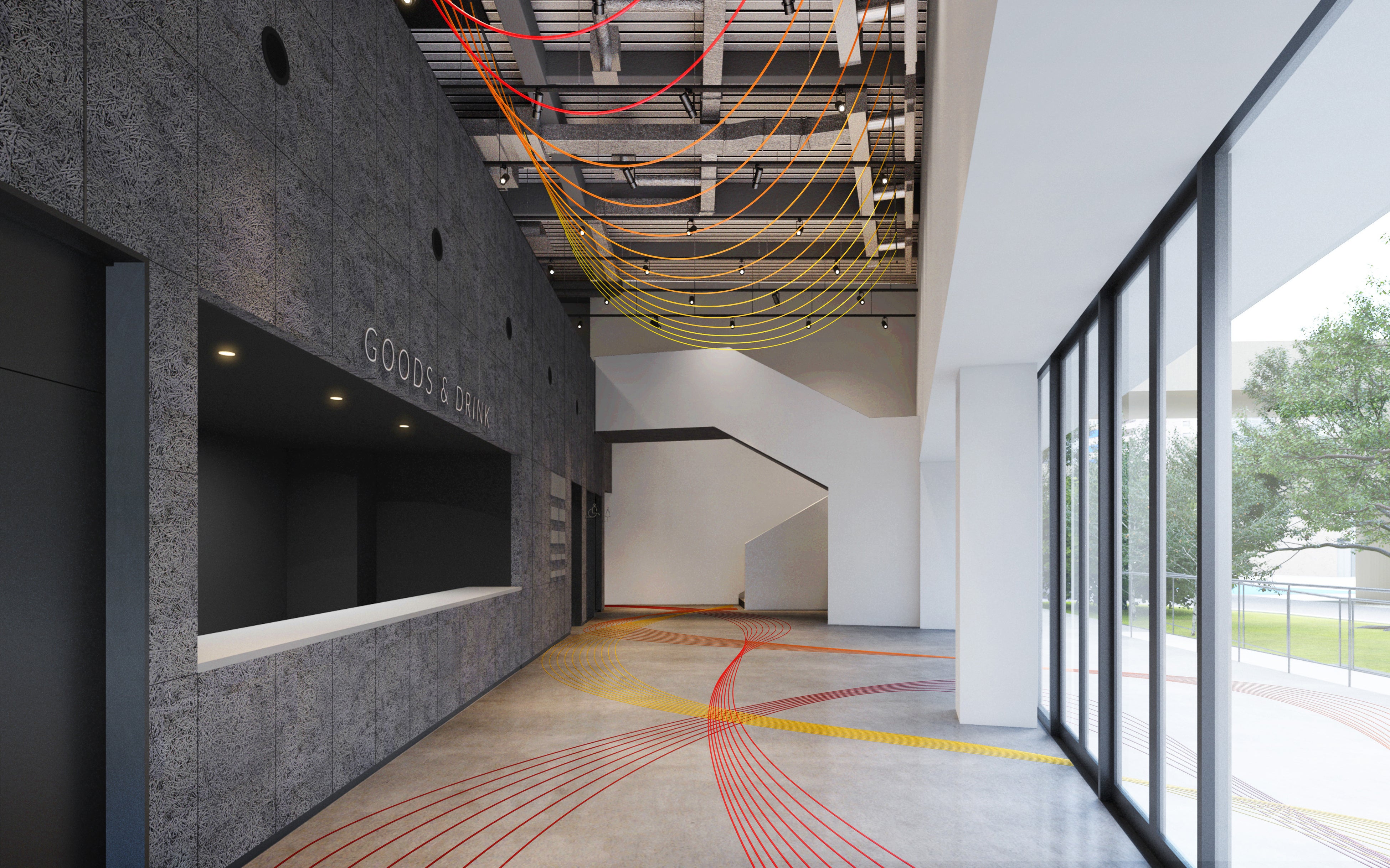 株式会社ホシノアーキテクツはこの新劇場のデザイン監修を手掛けており、デザインコンセプトは、スポットライトに包まれる舞台が作る「感動」「声援」「笑顔」 を、内外装とも にカラフルなロープワークをメインに表現し、劇場全体でワクワク感を感じられる演出を しています。